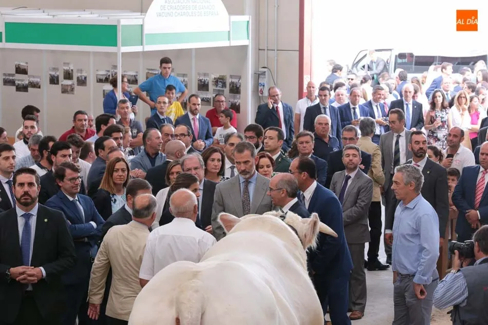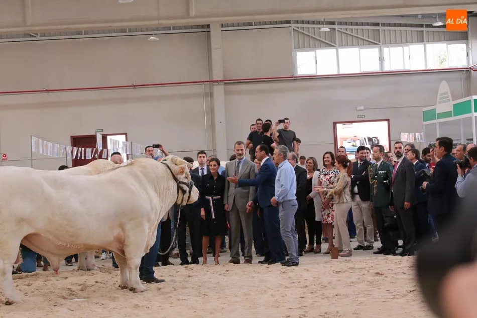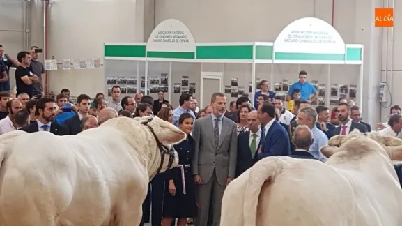 Alberto Martín ha explicado a los Reyes, durante su paso por la nueva nave de charolés, las características y las salidas para de esta raza, importante productora de carne. Martín también ha realizado una firme defensa del sector primario ante el monarca. ?Está difícil, pero hay que seguir luchando en Bruselas?, manifestando que don Felipe se mostró muy interesado por el trabajo que realizan a diario tanto agricultores como ganaderos.