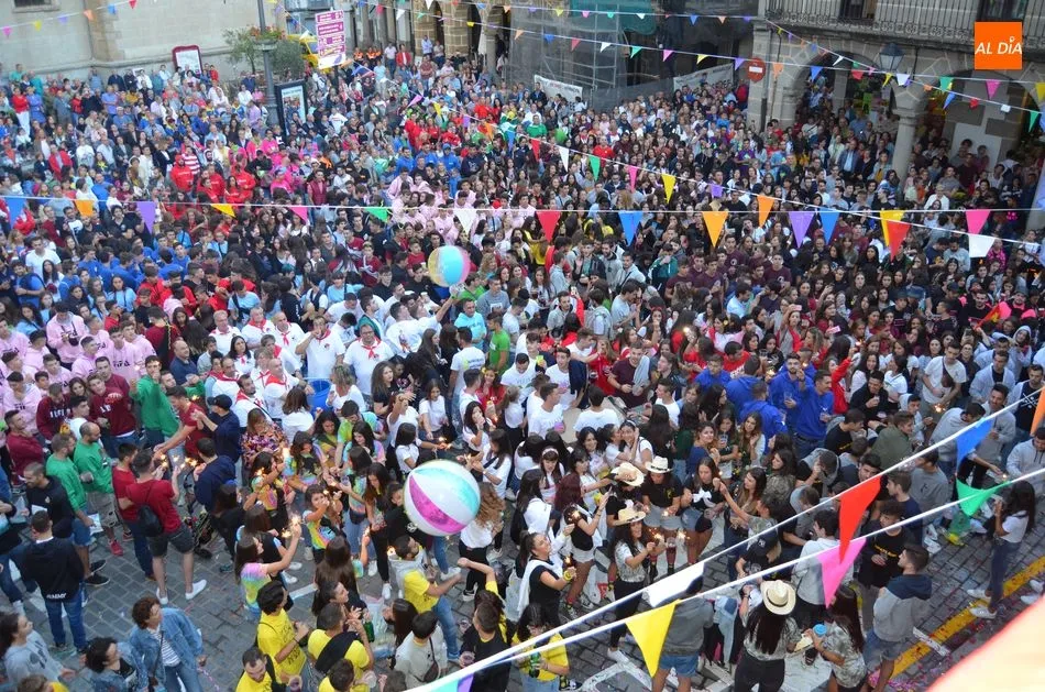 BÉJAR | Ambiente festivo en una Plaza Mayor repleta de colores para anunciar el inicio de las actividades de las Fiestas Patronales
