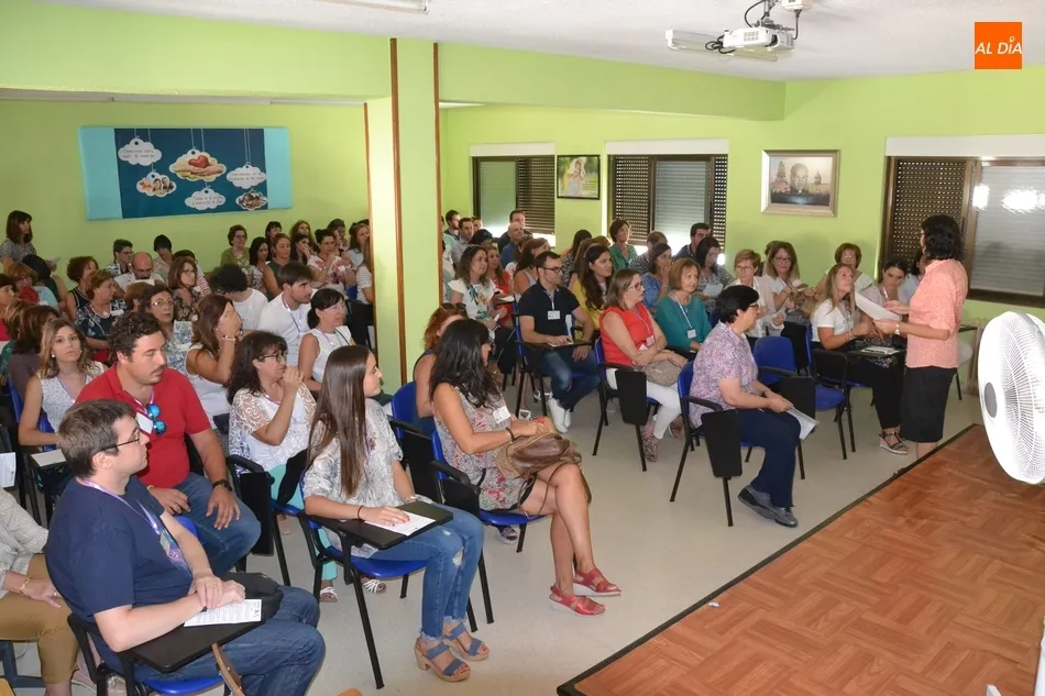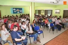 La convivencia comenzó con la recepción a todos los participantes en el patio del Colegio, donde disfrutaron de un pequeño aperitivo antes de pasar a la parte más ?formal? de la convivencia: una charla en materia educativa que estuvo precedida eso sí por la interpretación conjunta de la canción Color Esperanza y por el rezo de una oración.