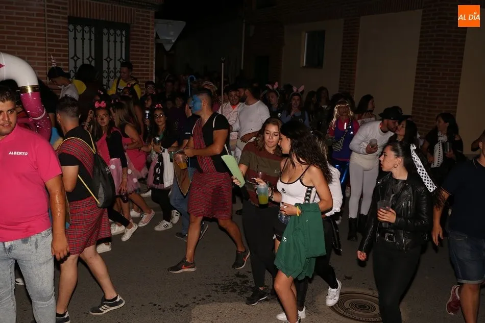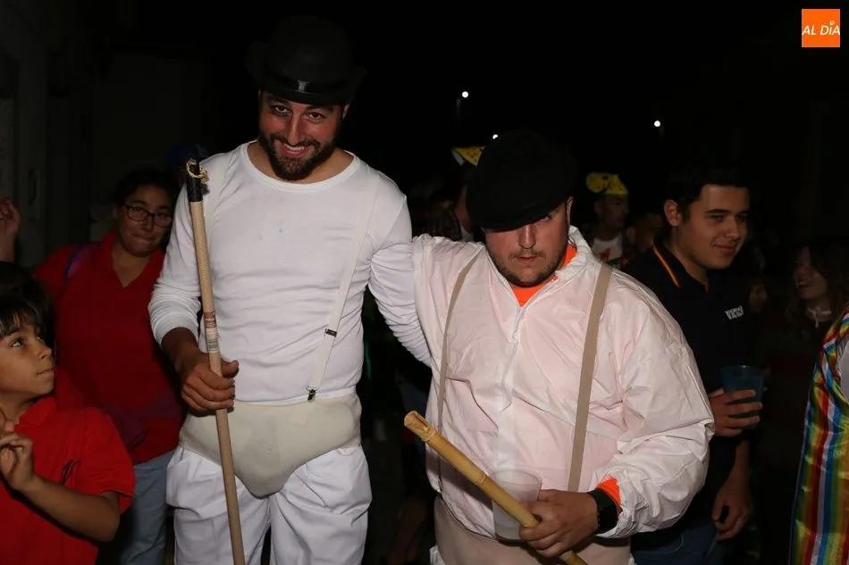 ¿Qué sería de las fiestas de los pueblos sin las peñas? Las de Villoria están muy vivas y con ganas de fiesta, como se ha podido comprobar en la noche de este jueves. Disfrazados de personajes de películas, los peñistas han participado en un multitudinario recorrido por los locales de las peñas a ritmo de música de charanga.