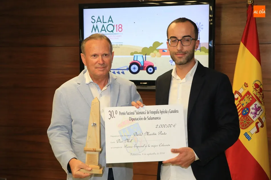 Los ganadores del 30 Concurso Nacional ?Salamanca? de Fotografía Agrícola y Ganadera han recibido hoy sus premios. David Martín Pinto, de Cantalpino, Premio Especial a la Mejor Colección titulada ?Reminiscencias?. Este premio especial, dotado con 2.000 euros y trofeo, forma parte del reconocido concurso organizado por la Diputación que se celebra dentro de la Feria Salamaq.