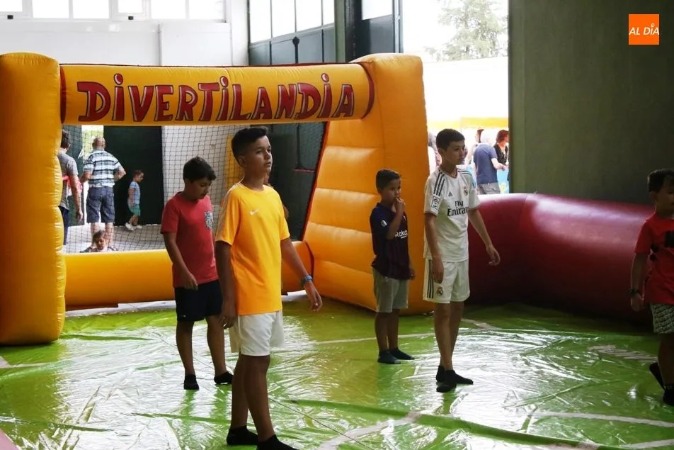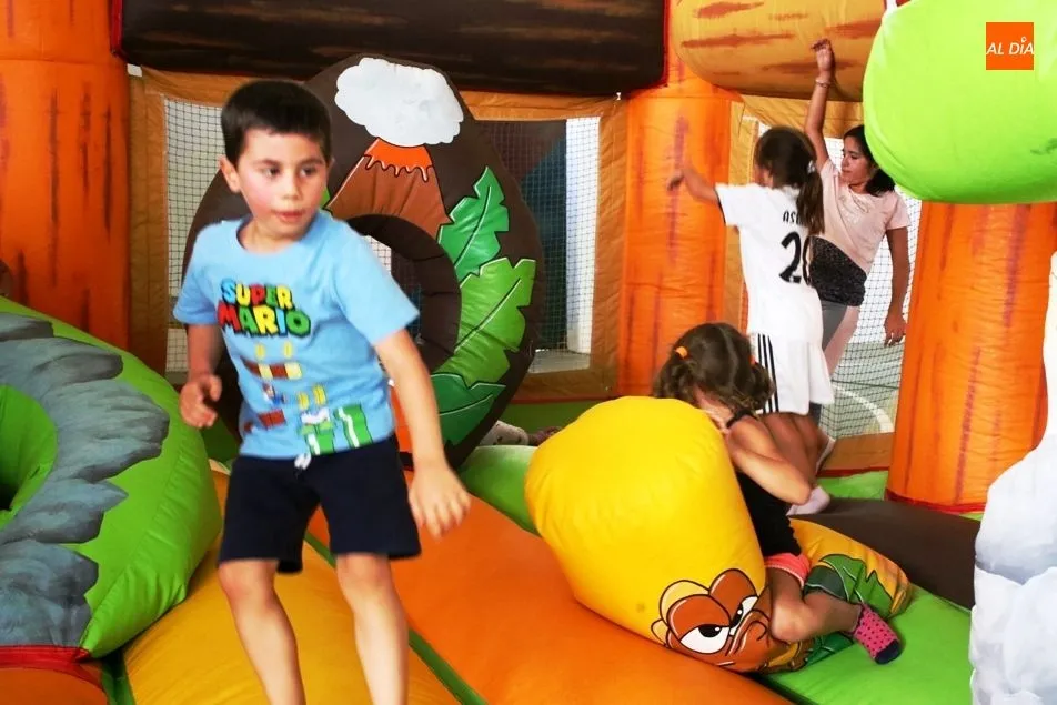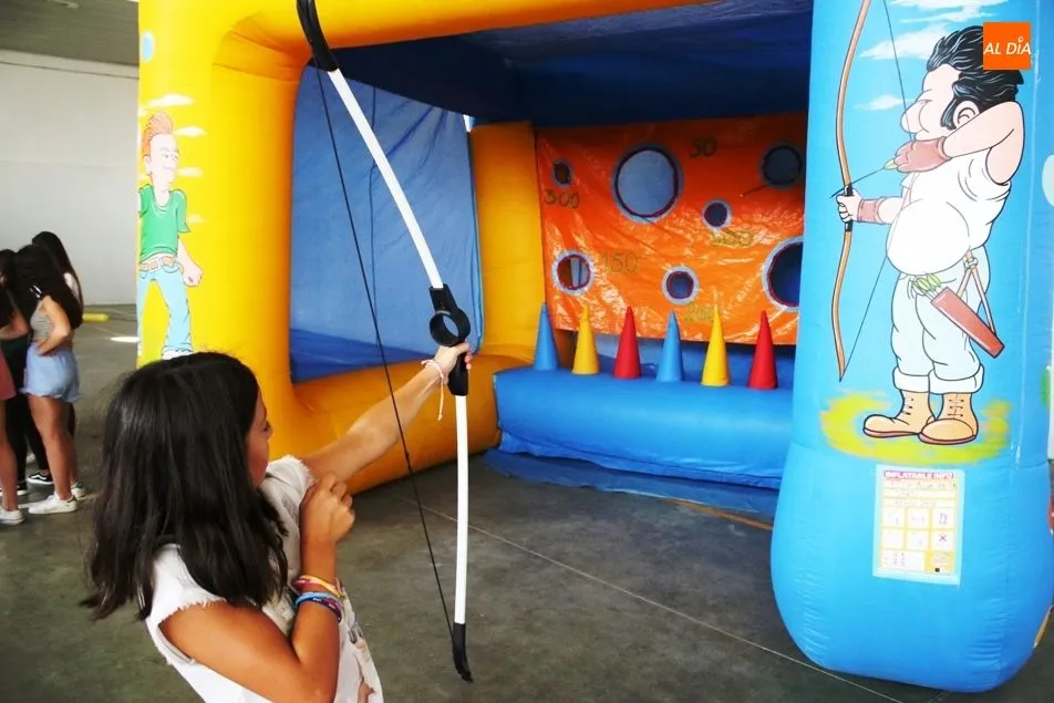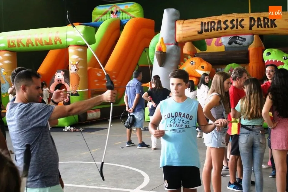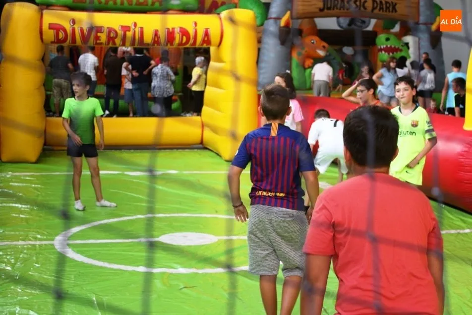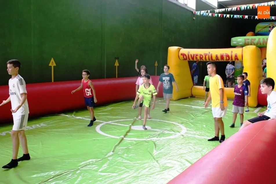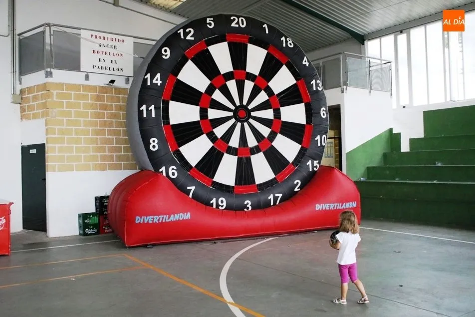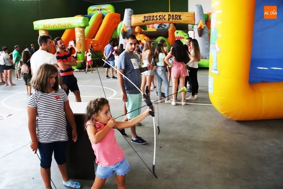 El parque infantil congregó a un gran número de niños y niñas que disfrutaron de hinchables, tiro con arco, una diana y futbolín gigantes