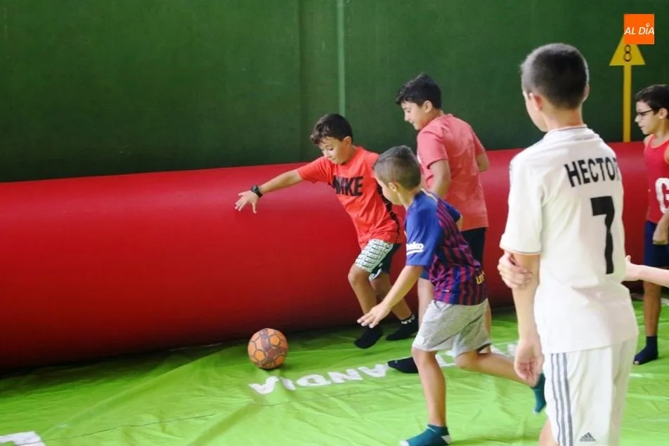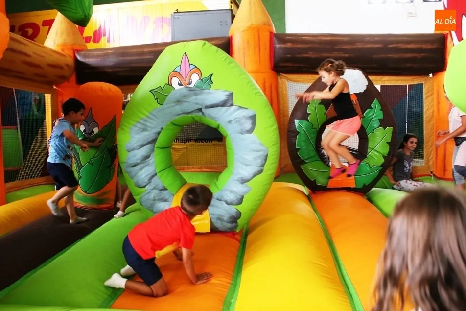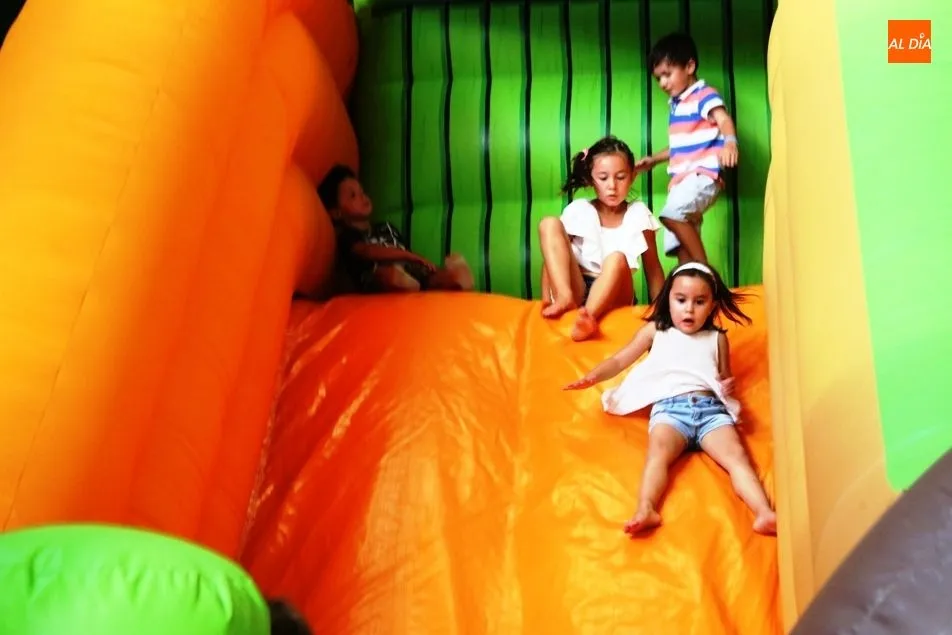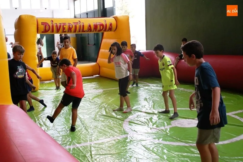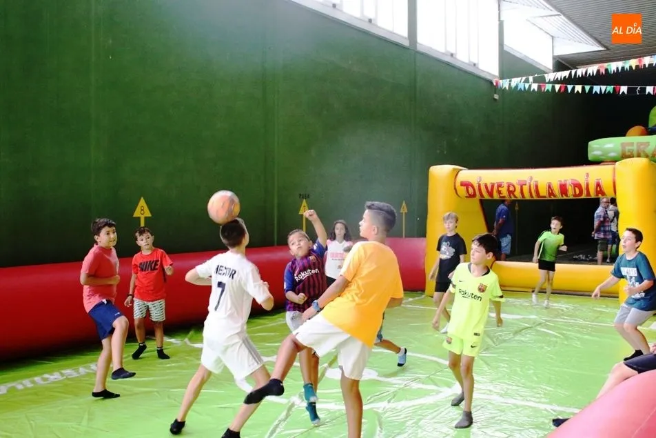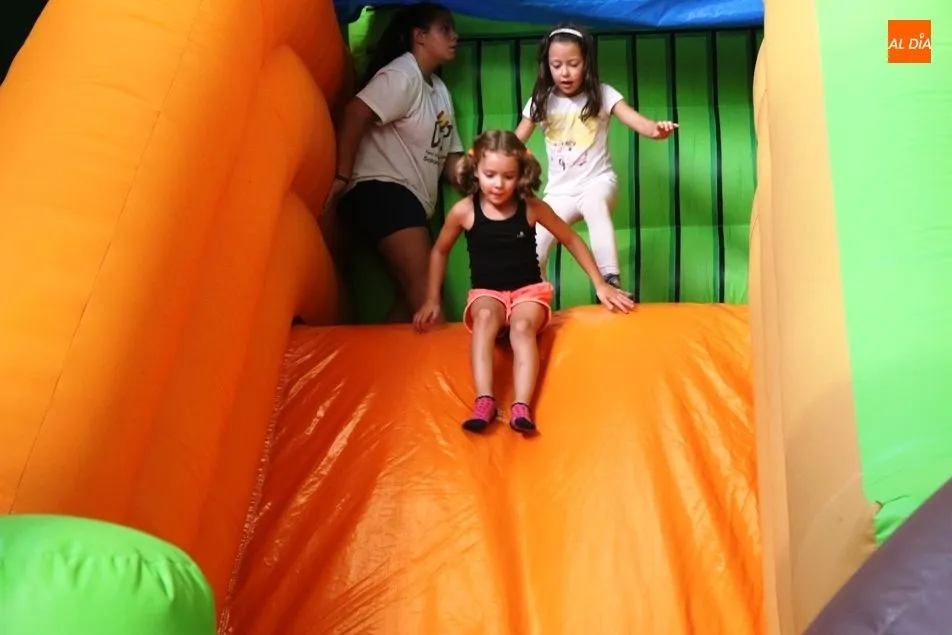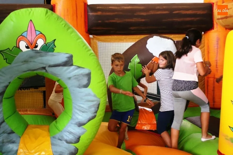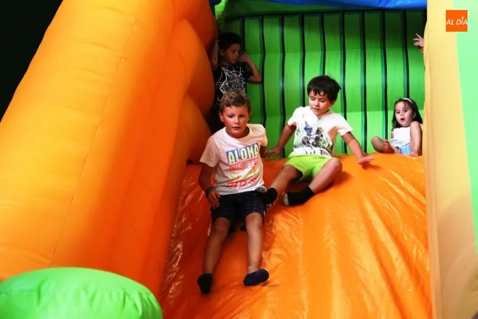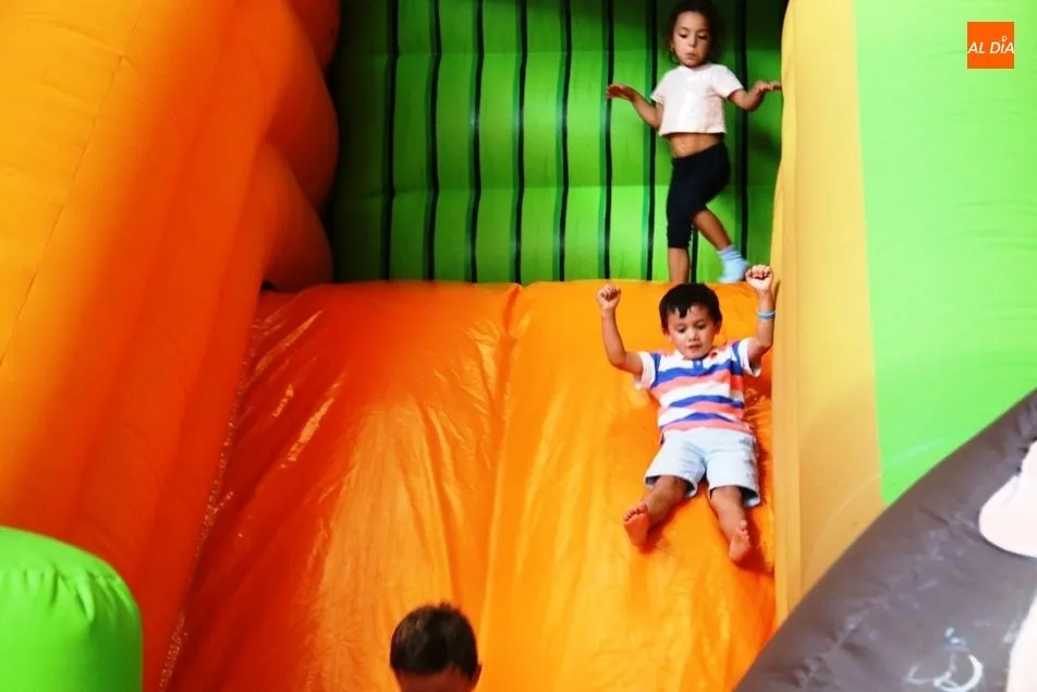 El parque infantil congregó a un gran número de niños y niñas que disfrutaron de hinchables, tiro con arco, una diana y futbolín gigantes