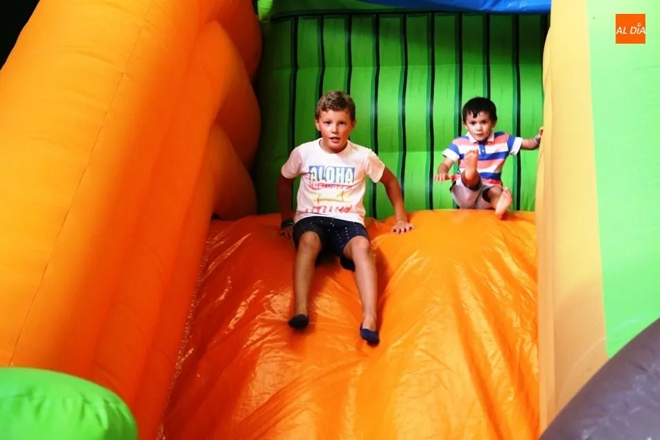 El parque infantil congregó a un gran número de niños y niñas que disfrutaron de hinchables, tiro con arco, una diana y futbolín gigantes. Desde el pasado jueves, los vecinos de Navales disfrutan de las fiestas de 'Nuestra Señora de Navales'. Una noche que comenzó con el chupinazo, la ofrenda floral, los fuegos artificiales y la orquesta 'Apolo'.