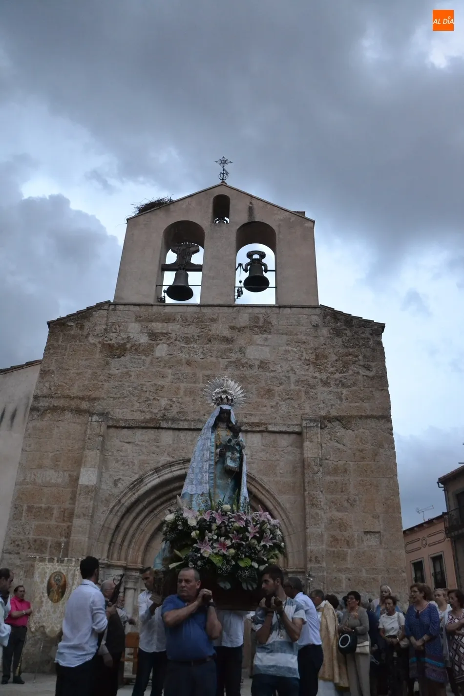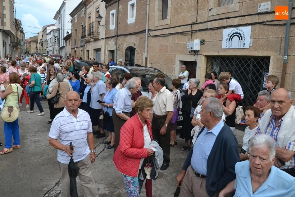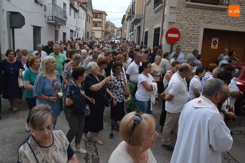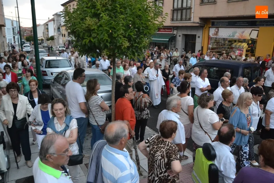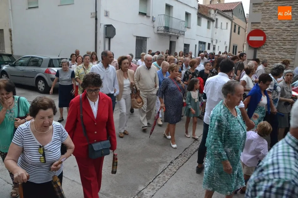 La misa, animada por el Coro de San Andrés, se demoró una hora, dando tiempo a que cayese el mencionado chaparrón, a que el cielo clareara bastante, y a que se volviese a oscurecer, lo que hizo tomar la decisión de recortar el recorrido para evitar en parte los riesgos. De este modo, se decidió suprimir el habitual tránsito de la Virgen por la Avenida de España y la Glorieta del Árbol Gordo -donde siempre se congregan varios cientos de mirobrigenses siempre que hace buen tiempo-, optando por coger la calle San Fernando.