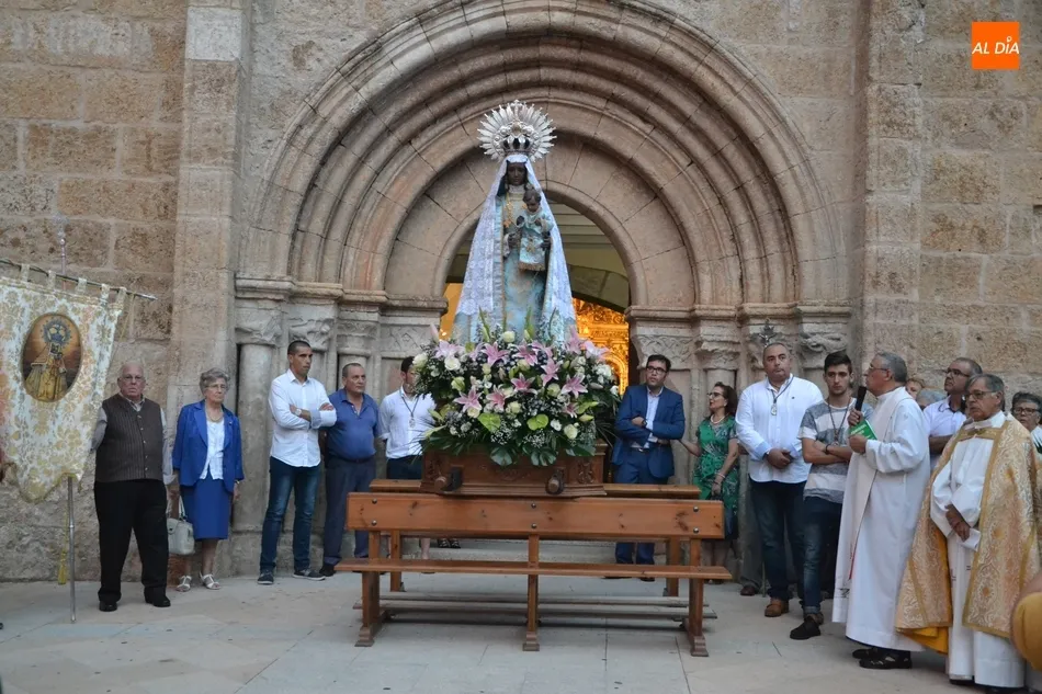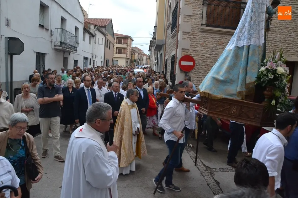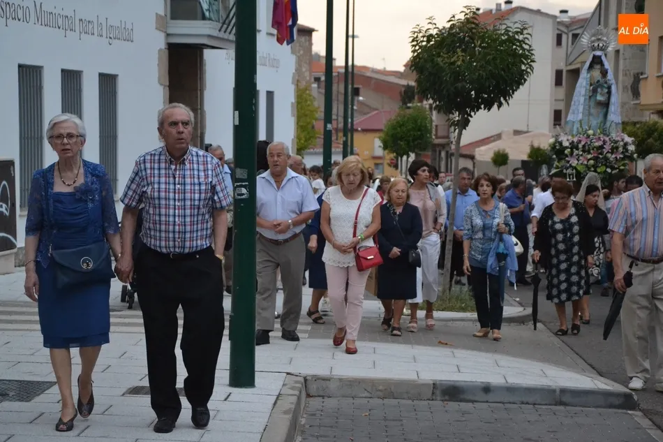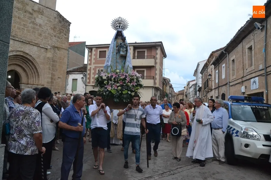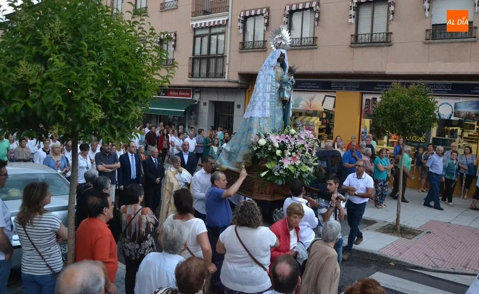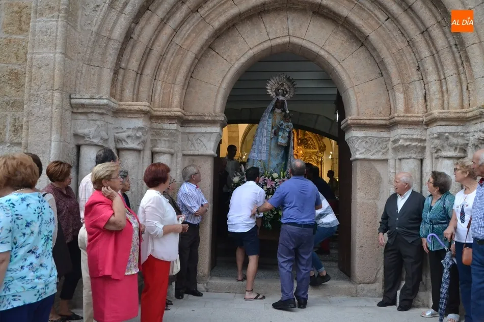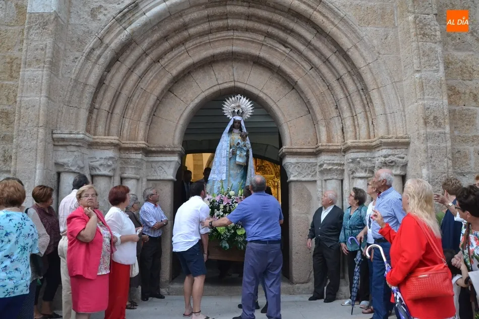 La Virgen de la Peña de Francia no faltó en la tarde del sábado a su cita con las calles de Ciudad Rodrigo pese a que el cielo se lo puso este año bastante difícil, ya que estuvo nublado durante toda la tarde, además de caer un fuerte chaparrón mientras se estaba celebrando en el interior de la Iglesia de San Andrés la solemne misa que incluyó la última sesión de la novena que comenzó el 31 de agosto.
