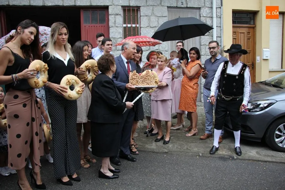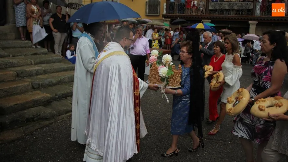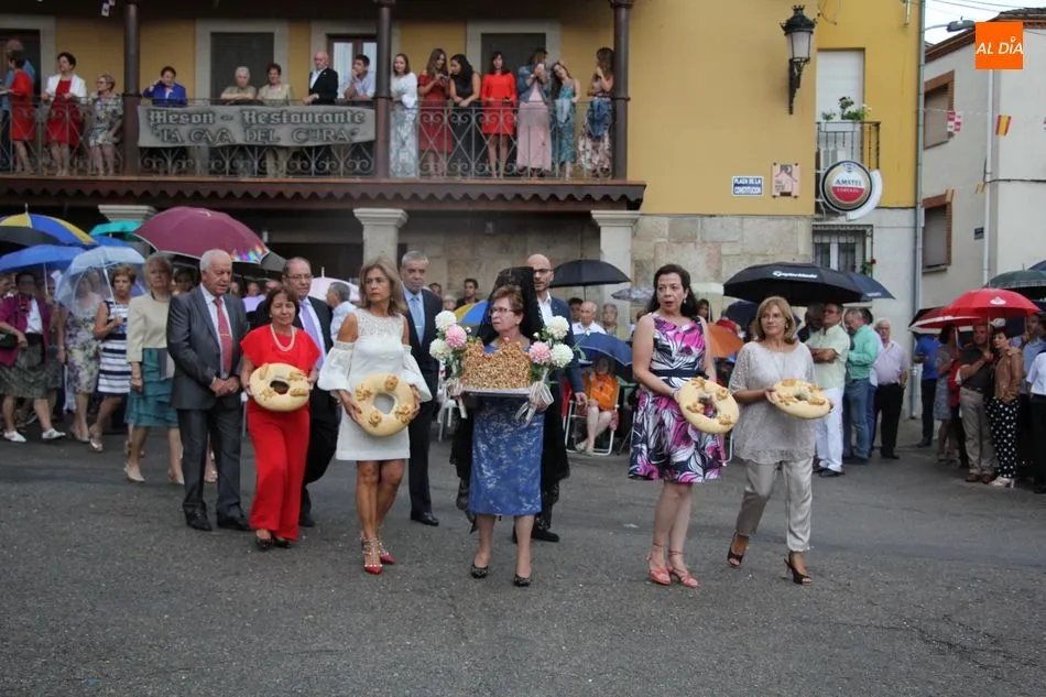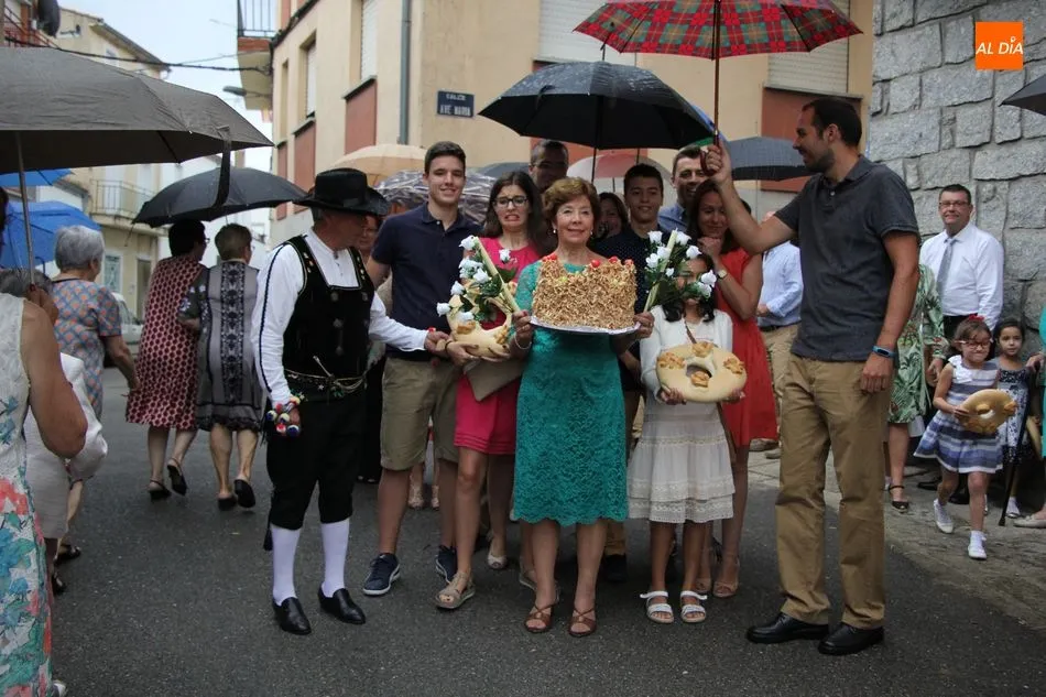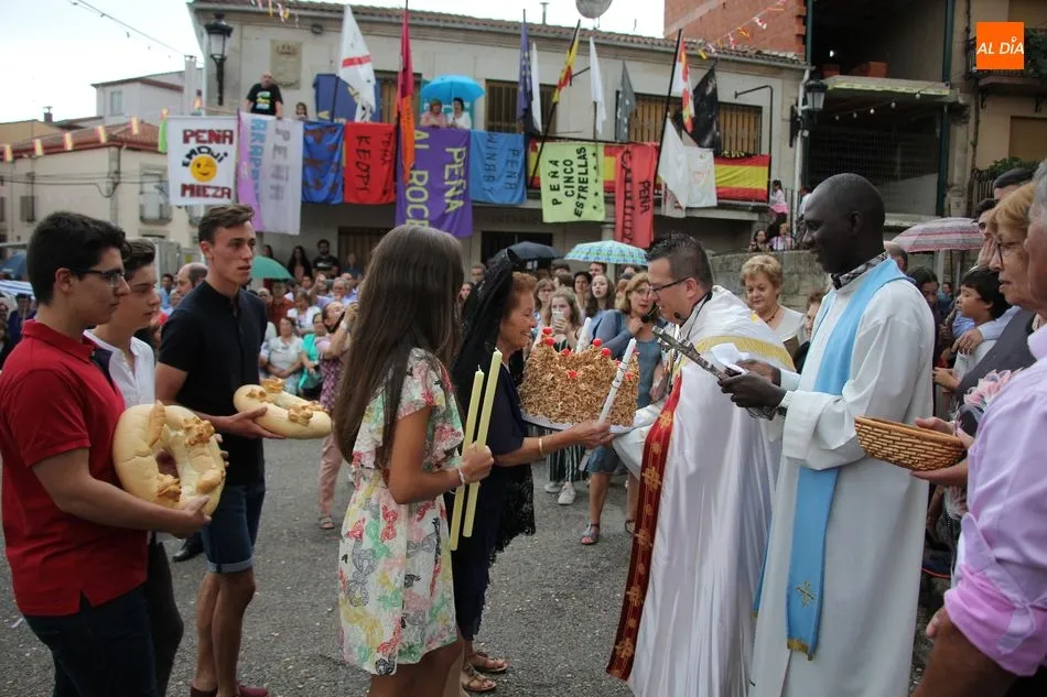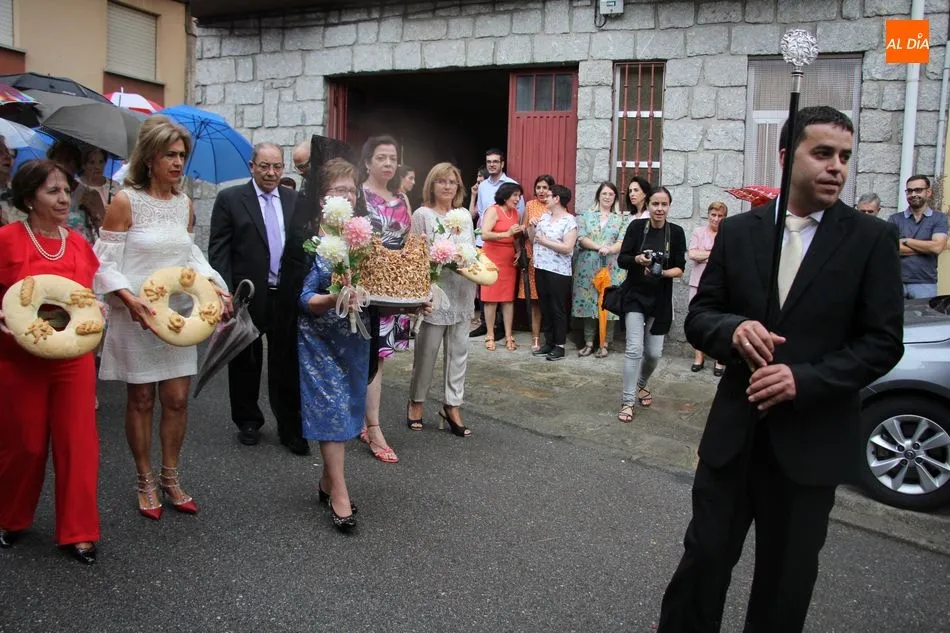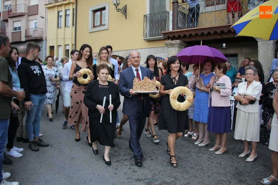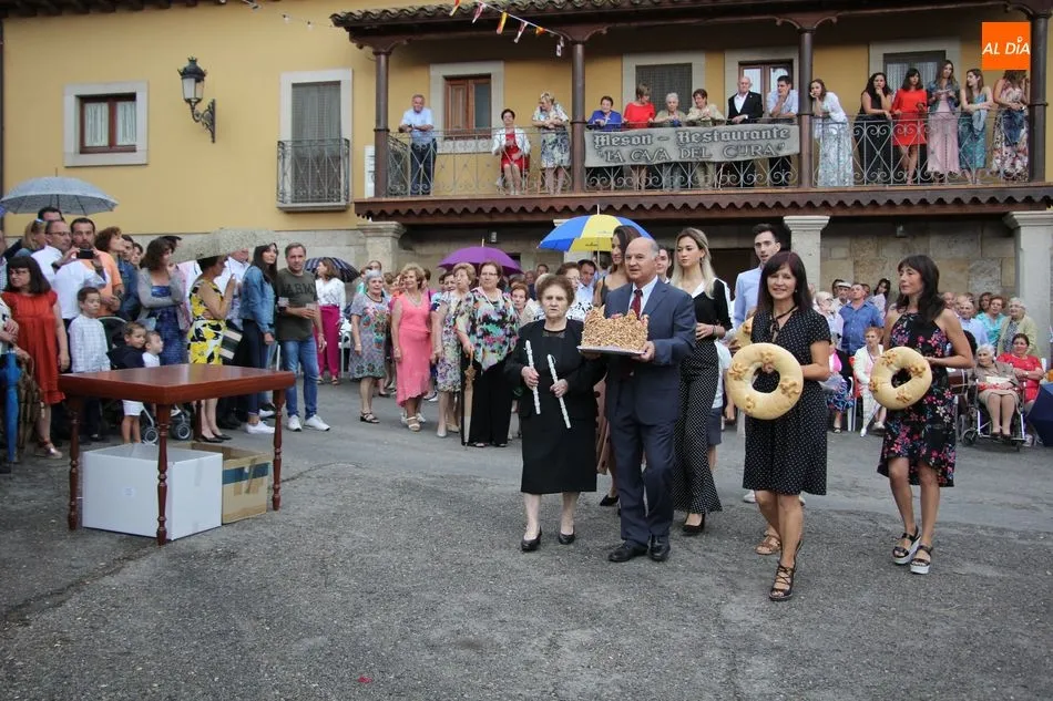 Bajo el pasacalles interpretado por Lucidio Calvo ?Luci?, el alcalde de la localidad, Ismael García, luciendo el bastón municipal, acompañaba al mayordomo de este año, Antonio Pascua, para recibir a cada una de las madrinas en la calle Osario. Con el saludo a modo de reverencia comenzaba el pasacalles de regreso a la plaza, para concluir con la ofrenda de sus roscas a la Patrona, acto en el que cada Madrina se hace acompañar de su familia.