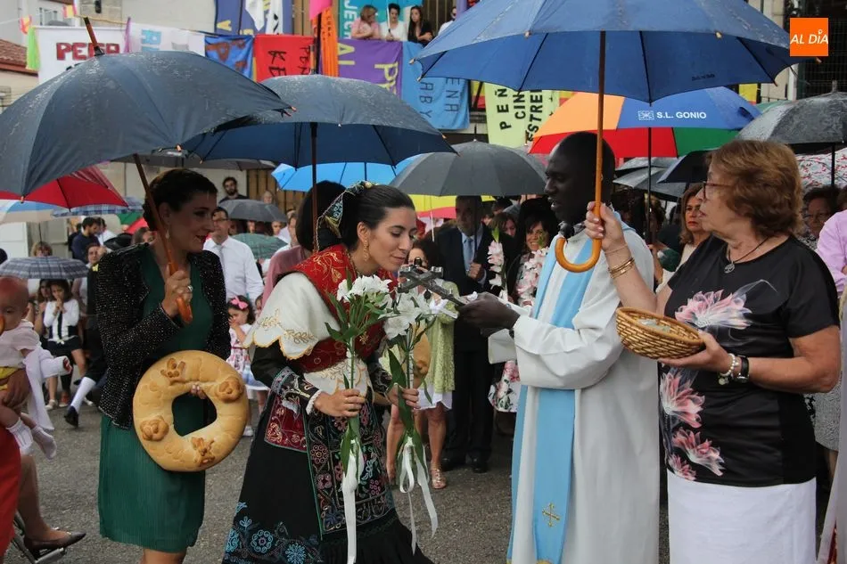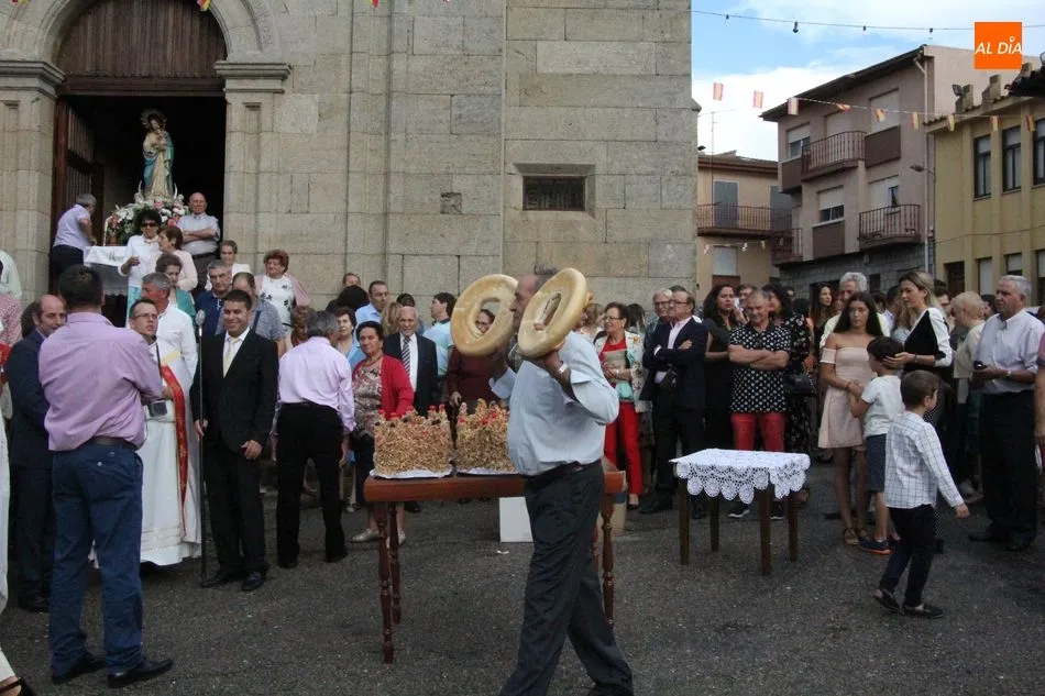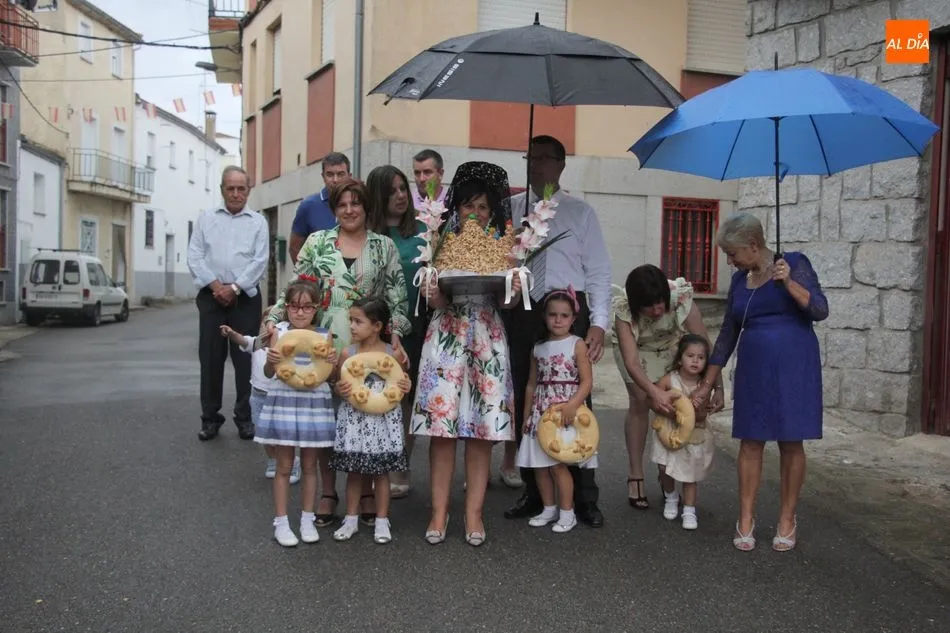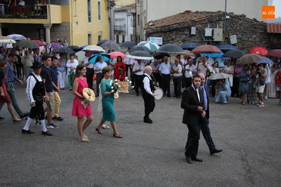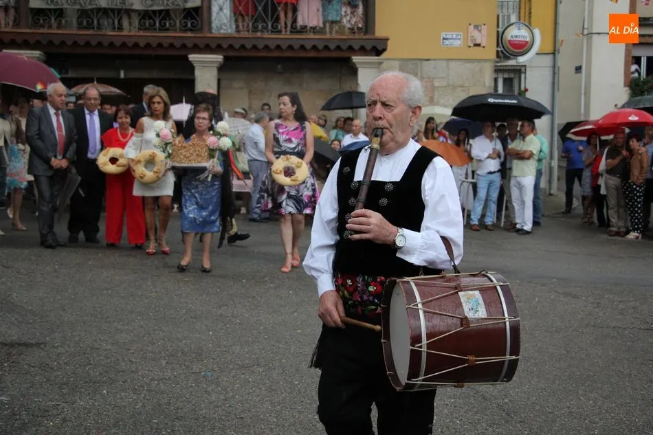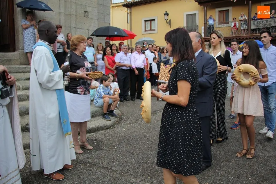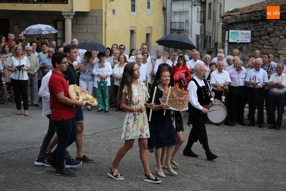 Bajo el pasacalles interpretado por Lucidio Calvo ?Luci?, el alcalde de la localidad, Ismael García, luciendo el bastón municipal, acompañaba al mayordomo de este año, Antonio Pascua, para recibir a cada una de las madrinas en la calle Osario. Con el saludo a modo de reverencia comenzaba el pasacalles de regreso a la plaza, para concluir con la ofrenda de sus roscas a la Patrona, acto en el que cada Madrina se hace acompañar de su familia.