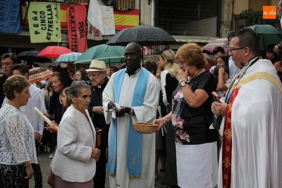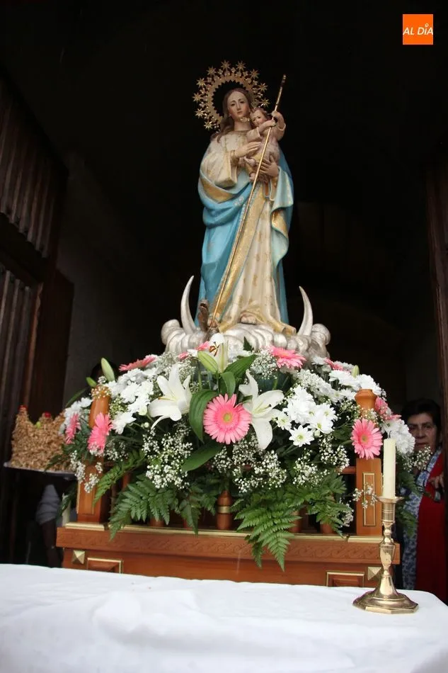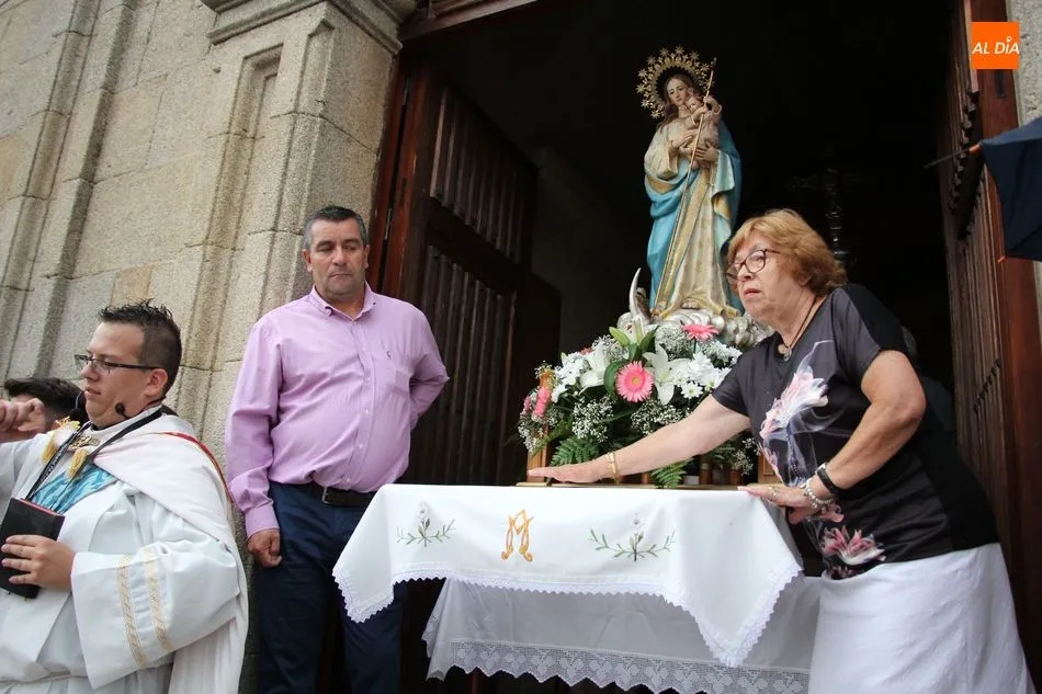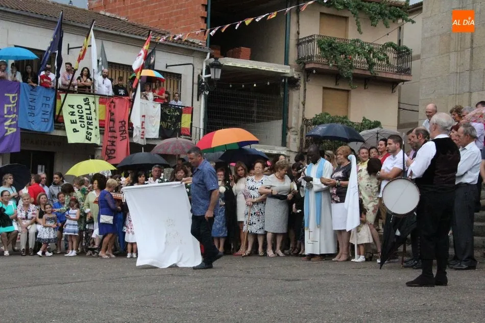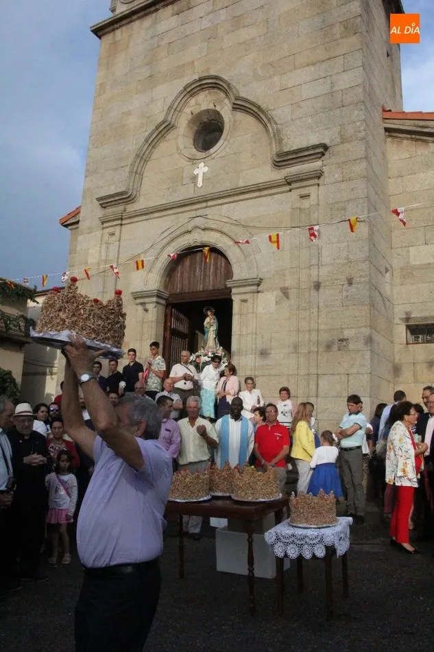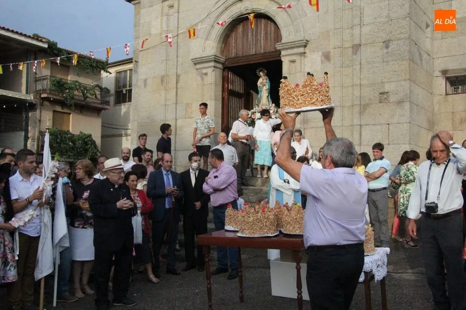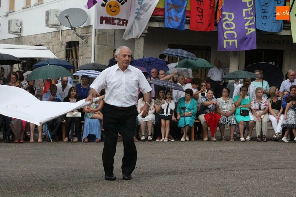 Pero antes de este arraigado momento entre los miezucos, el día grande de estas celebraciones comenzaría en la mañana con la procesión de la Virgen desde la ermita a la iglesia parroquial, acto al que seguiría la misa y el correspondiente convite ofrecido por el Ayuntamiento y que estuvo precedido por el homenaje que el Ayuntamiento tributaba en nombre de todos los vecinos a las personas de mayor edad de la localidad, y que recibieron una placa en recuerdo de este día.