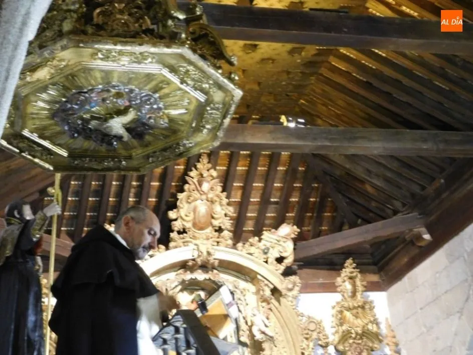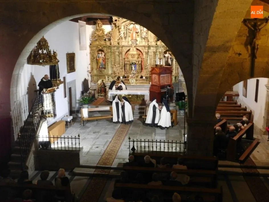 Cuando en medio de la tormenta con que se cerró tan iluminadora tarde, los componentes del grupo subían a su autobús camino de Salamanca, las azuladas luces del campanario de la iglesia, parecían serena señal de lo dejado dentro de ella. Años de historia y cultura bien protegida por unos vecinos orgullosos de un patrimonio de siglos que recibieron de sus mayores y que ayudados por hombres civiles y religiosos han logrado mantener incólume, bello. Joyas medievales como las de su baptisterio, que guarda una rotunda pila bautismal y un magnífico Cristo románico, miran de frente un retablo barroco que enmarcó a una obra de Teatro, que parecía formar parte viviente del templo. Perfecta simbiosis entre su púlpito de la época de ?la jardinera? y el padre dominico que desde lo alto, no pudo apagar la luz de toda esa sabiduría que encerraron los muros de su iglesia durante una hora llena de eternidad, de la universalidad de lo bien hecho.