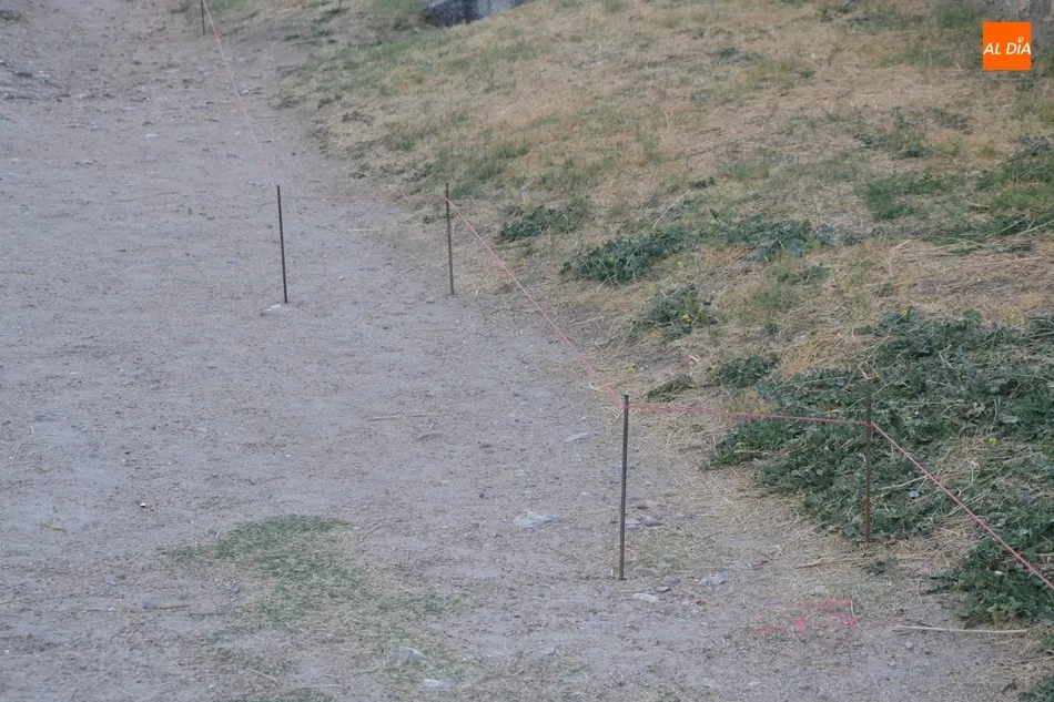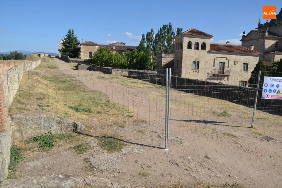 Como primer paso de esta nueva intervención, se ha procedido a colocar en el adarve una doble hilera de vallas para impedir el paso por parte de ese tramo. Por un lado, se ha situado una fila de vallas a la altura de la Puerta del Conde, mientras que la otra no se ha instalado en la Brecha Grande, sino junto a las escaleras que permiten bajar desde la muralla hacia la Plazuela de Amayuelas (es decir, por el momento no se ha cortado todo el tramo en el que se va a intervenir).