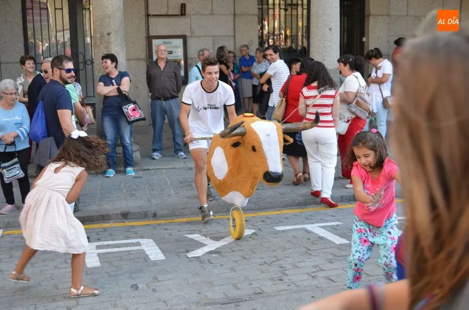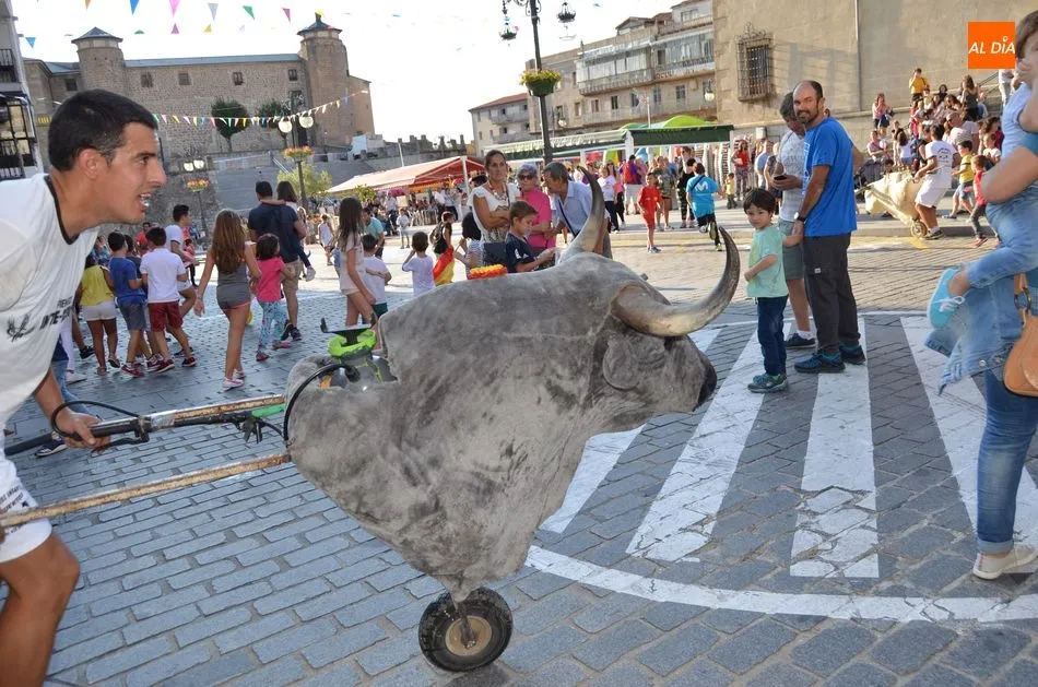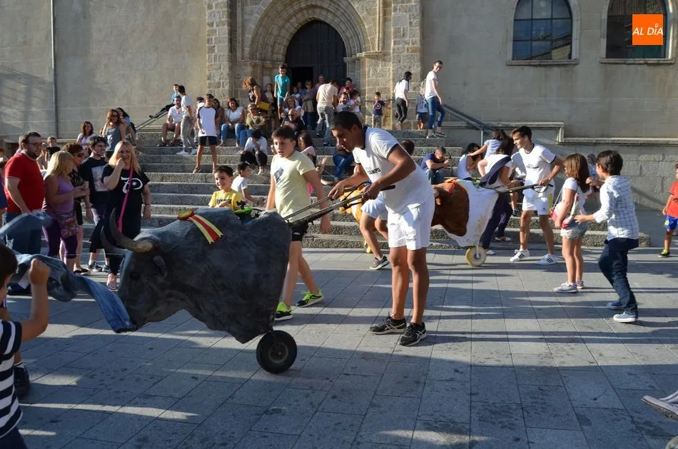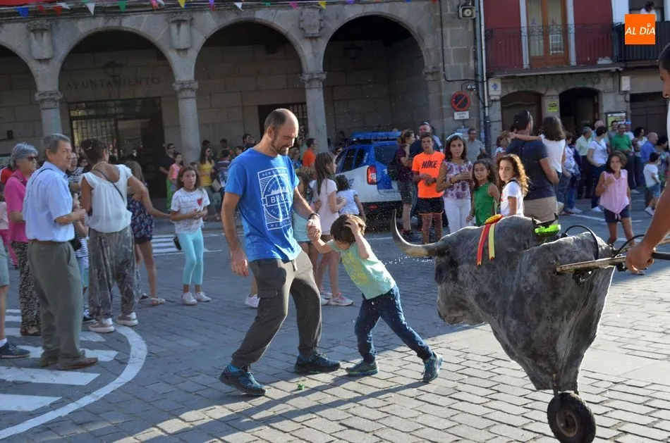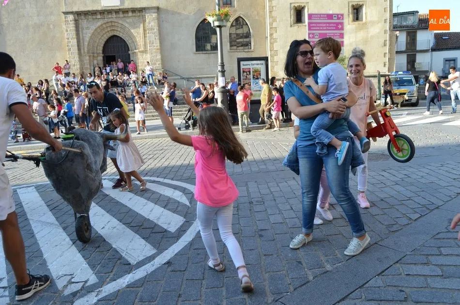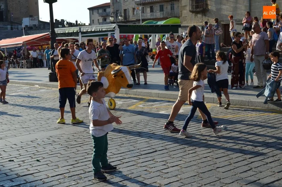 Tarde de carretones e hinchables en la Plaza Mayor para los más pequeños, que han corrido delante de los enérgicos toros de Vitigudino, aunque los mayores no se han quedado atrás en eso de correr delante de los astados. La Plaza se ha llenado de risas y de cabezudos que han animado también el ambiente taurino y donde los más pequeños han acabado un poco mojados, pero todos enteros y con una gran sonrisa.