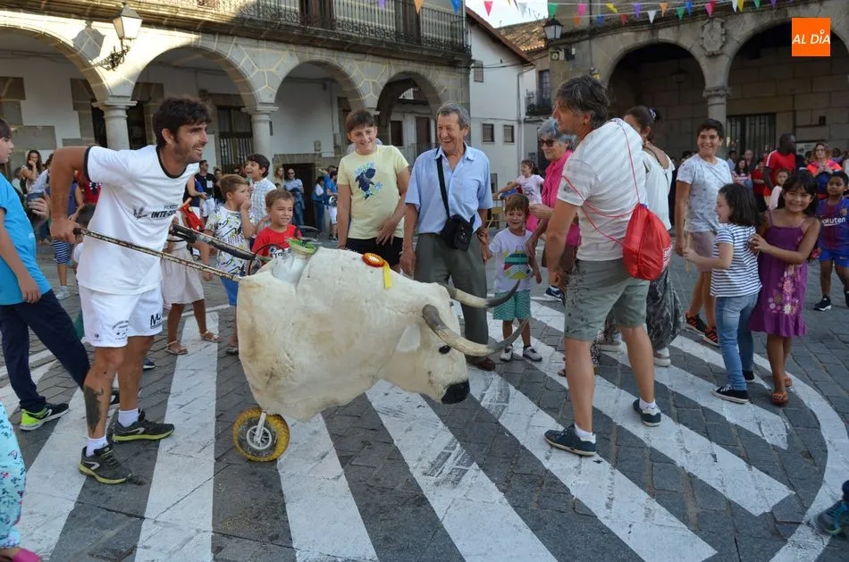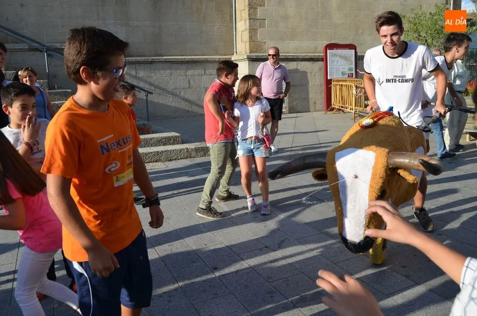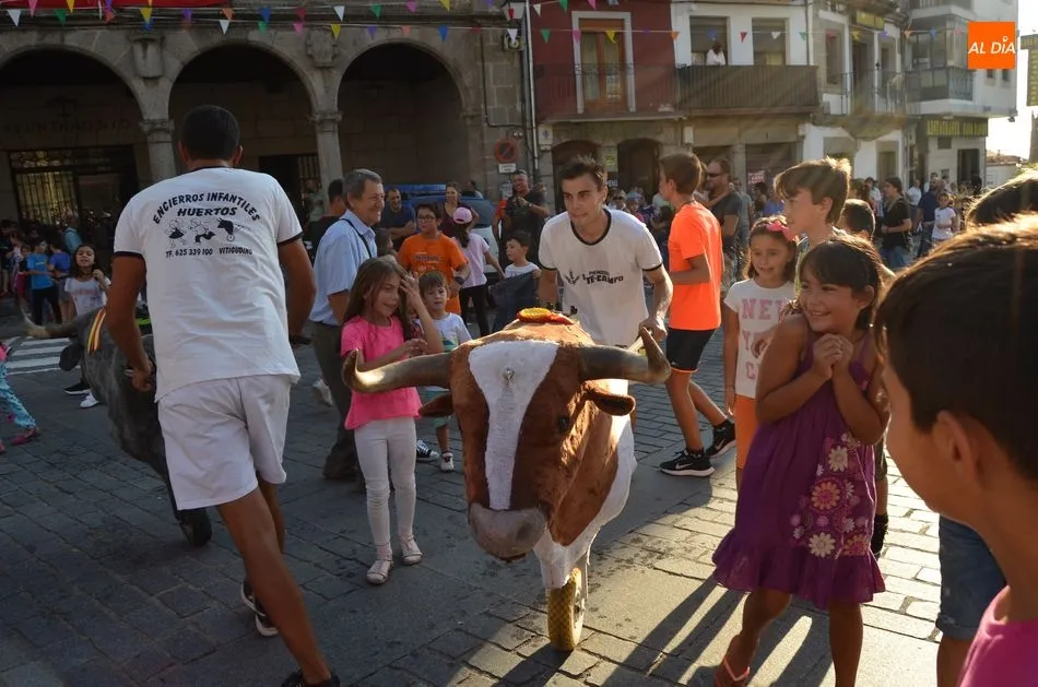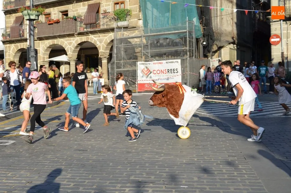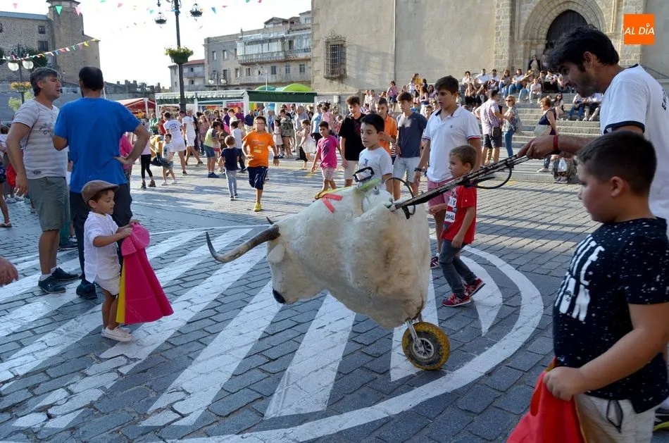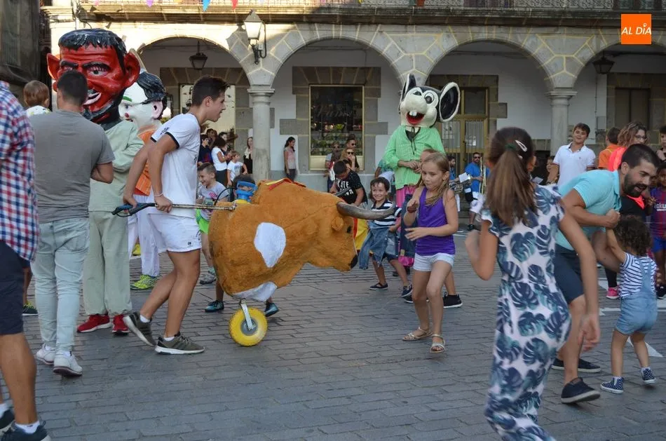 Tarde de carretones e hinchables en la Plaza Mayor para los más pequeños, que han corrido delante de los enérgicos toros de Vitigudino, aunque los mayores no se han quedado atrás en eso de correr delante de los astados. La Plaza se ha llenado de risas y de cabezudos que han animado también el ambiente taurino y donde los más pequeños han acabado un poco mojados, pero todos enteros y con una gran sonrisa.