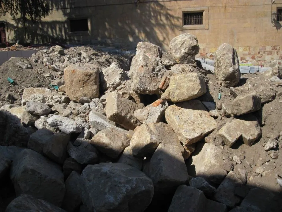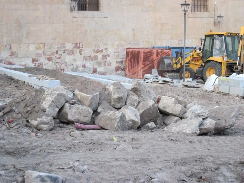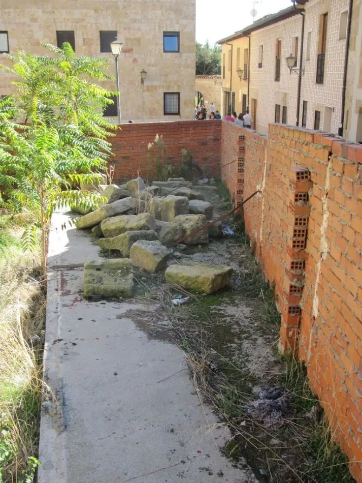 Un mes después, el 21 de agosto, tras haber constatado la presencia de restos de interés los cuáles eran maltratados, enterrados por la maquinaría y utilizados como relleno, esta Asociación solicitó la paralización de las obras hasta que éstas pudieran ser vigiladas por arqueólogo titulado, tal y como impone la Ley de Patrimonio Cultural de Castilla y León, a la vez que se solicitaba la recuperación para su entrega y conservación en dependencias museísticas, como así establece la legislación vigente. Se trataba de elementos arquitectónicos que, tras un estudio por expertos, podrían ser identificadas de forma certera. Si bien, en base al material fotográfico, se podrían realizar someras consideraciones sobre los mismos.