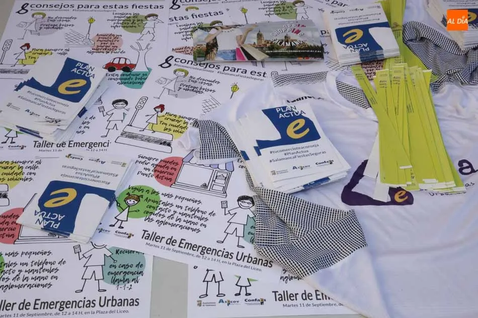 Esta iniciativa, enmarcada dentro de la colaboración con el Ayuntamiento de Salamanca. Se ha distribuido material informativo, folletos con las recomendaciones para disfrutar de unas fiestas seguras y pulseras, destinadas a tener identificados a los niños en eventos que conllevan gran afluencia de público.
