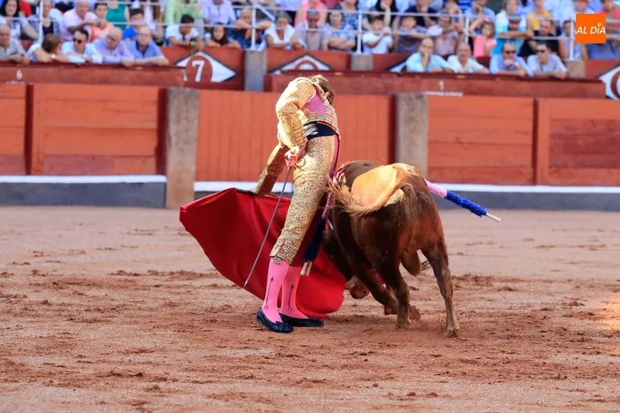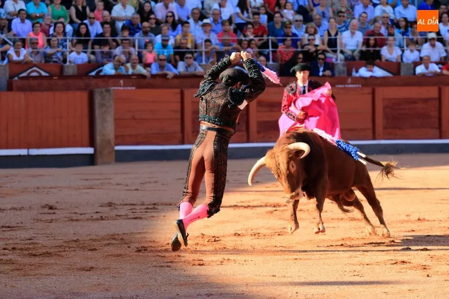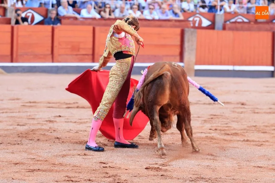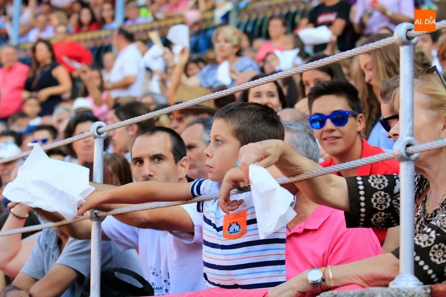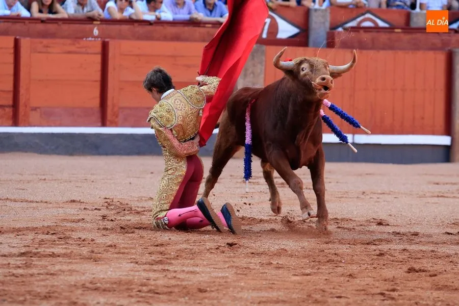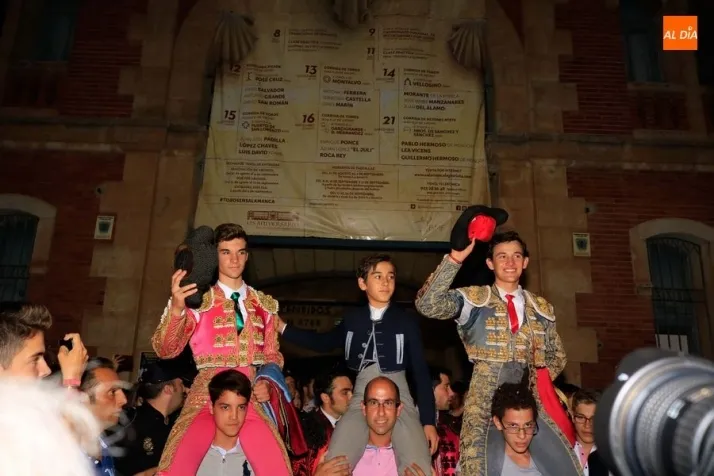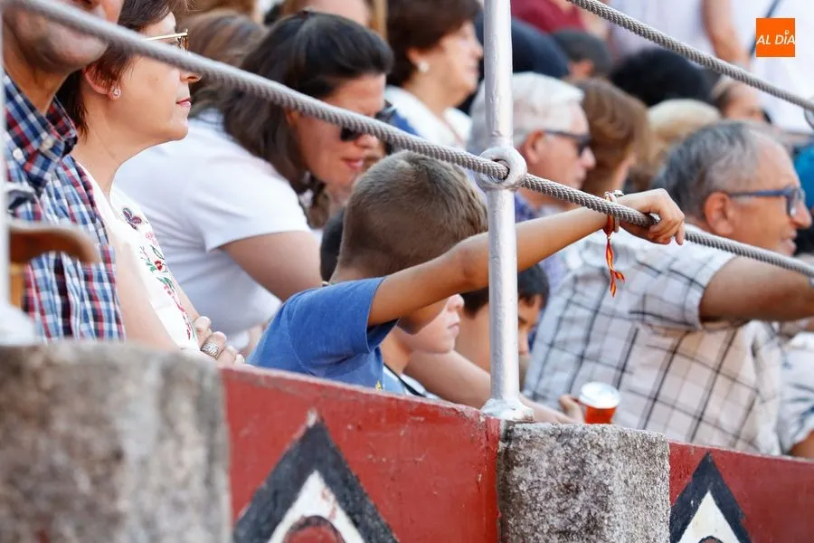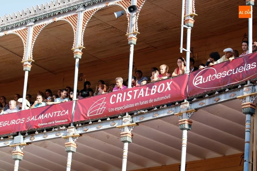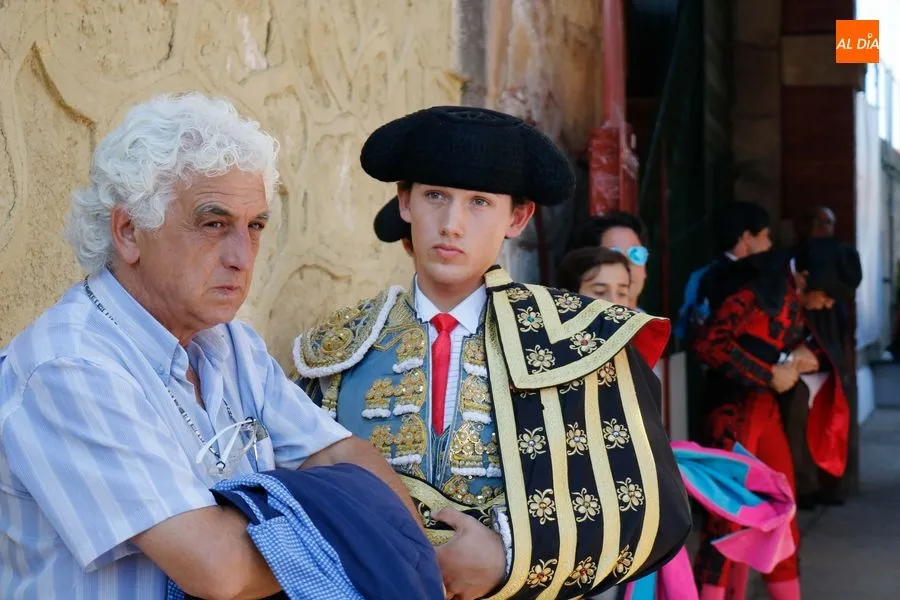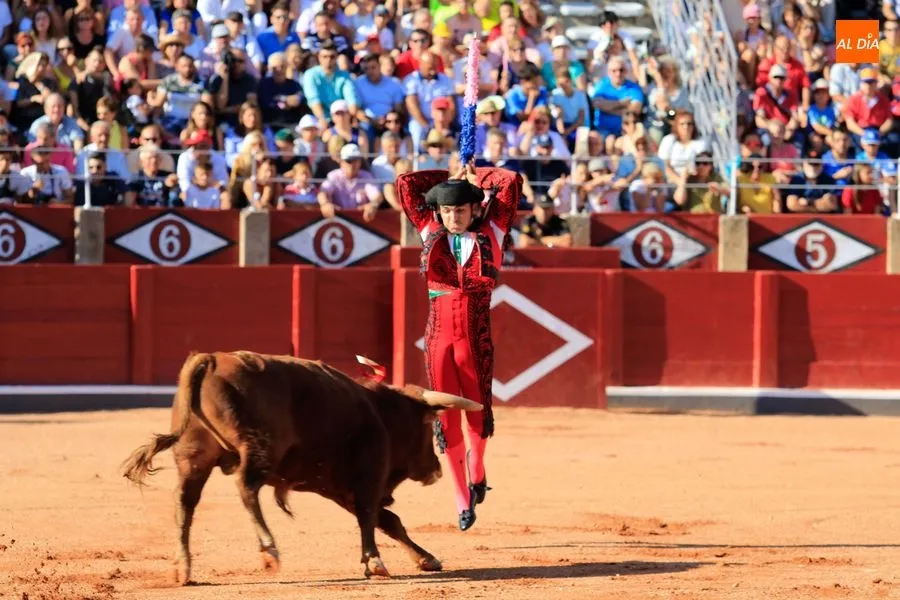 Pero la Glorieta tenía reservada una sorpresa; si porque ya en el paseíllo vimos a un menudito torero, vestido de corto, que acompaño a sus mayores. Este mediada la novillada, se anunciaba un añojo para el cara de ?pillo? Ismael Martin, de la escuela salmantina ver la gente el becerrote y al niño torero, fue todo una exclamación, pero Ismael tiene un desparpajo inusual, el ?chico quiere ser torero?, y se le nota mucho, fácil con el capote, a la verónica, lucio luego con lopecinas, el clamor de la plaza fue total cuando se vio que el chaval cogió los palos para banderillear,- no puede ser decían algunos- pues le enjareto dos pares por derecho gustándose, y ya con la muleta, después de brindar a Chopera, por la oportunidad, le aplico derechazos al torete con limpieza y en los de pecho, lo paso templado y con enjundia, templo bien mas separado al natural, pero no bajo el diapasón, pues con faena justa y medida con un final por la espalda en redondo, que repitió, se fue tras la espada, cuando nadie en la plaza creía que mataría al torete, cobro de entera un tanto perpendicular, y el animal murió y quedo bien claro que Salamanca y su Glorieta, tienen punto y seguido, la plaza en autentico manicomio y griterío ensordecedor, le pidió para el muchacho de nombre Ismael las orejas y el rabo, es posible que hoy tarde en dormir. Gracias por decirnos que quieres ser torero.