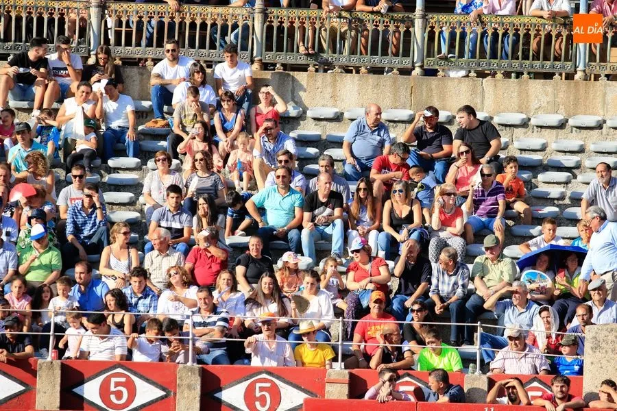 Después de acicalar un poco la plaza tras desenjaule y recortes, se han dado cita en la misma, los novilleros finalistas de este certamen, que han entrado en competencia, tanto en esta plaza como en otras de los pueblos cercanos. Lo cierto es que la idea llevada a cabo, así como su organización ha sido, muy bien acogida por el público, que se dio cita en esta por miles, y lo cierto es que ha dado una agradable impresión ver a tantos jóvenes, o niños a acompañados de sus padres y abuelos, recobrar una estampa, que me recordaba tiempos pasados: