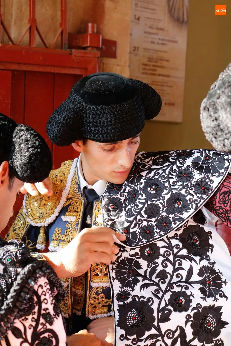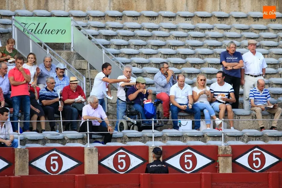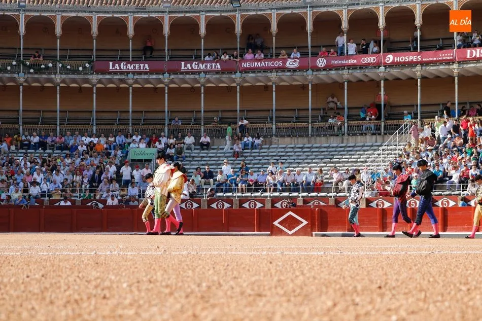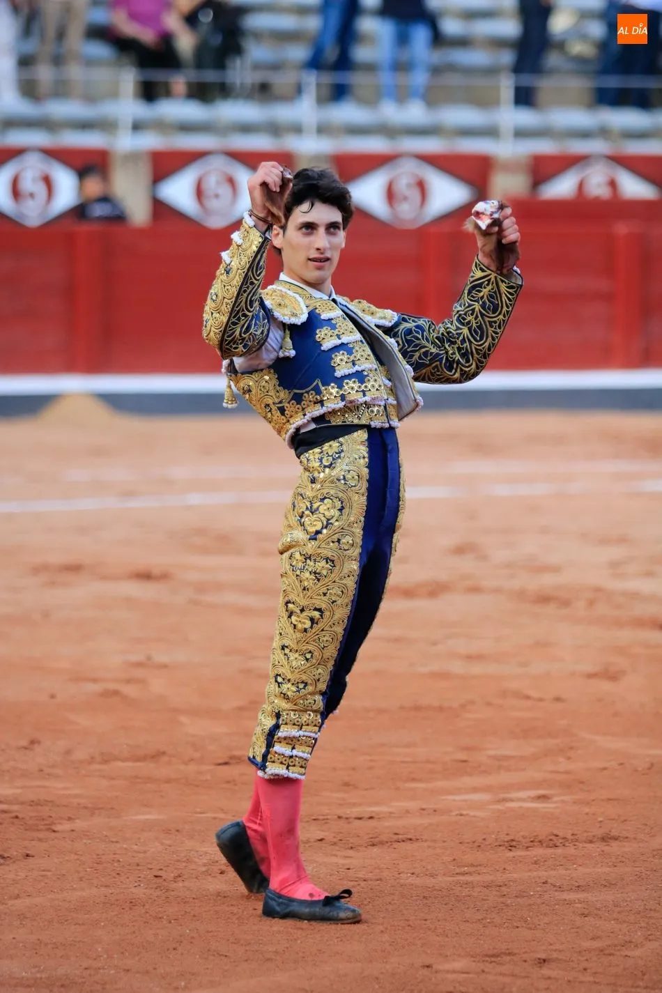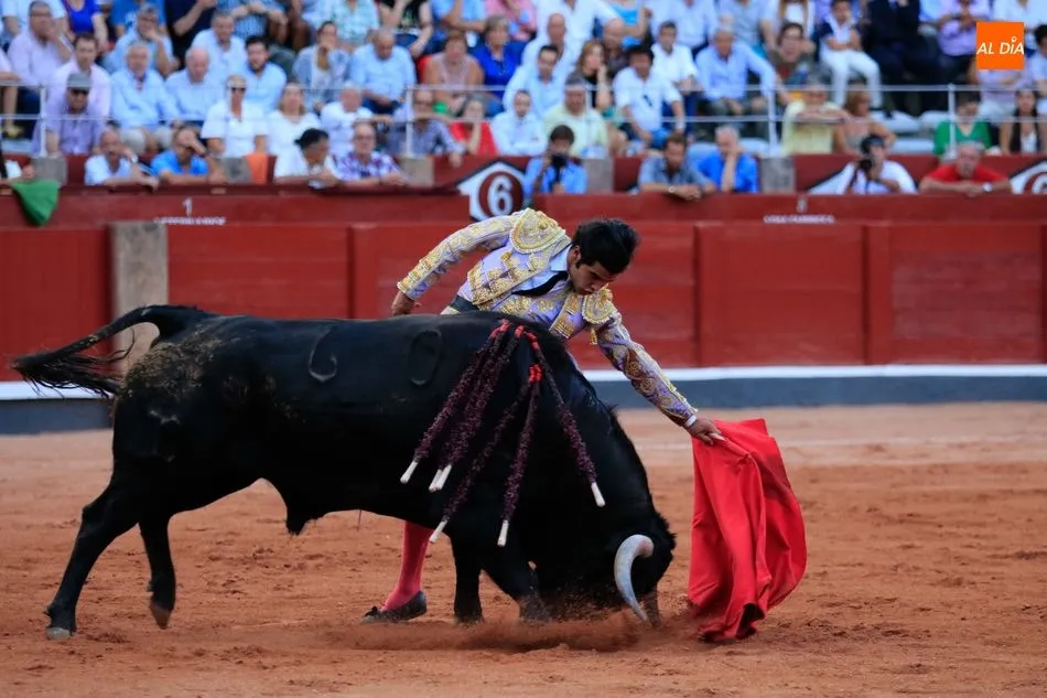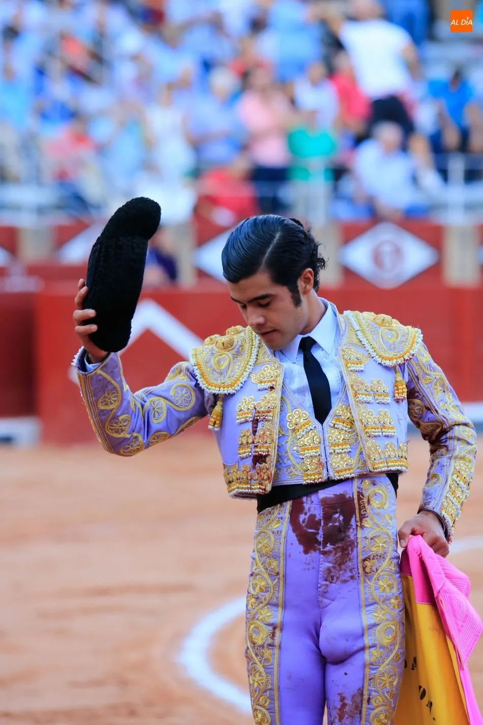 A pie se fue un David Salvador entre ovaciones cuando tanta falta hace el triunfo. Todo lo que se intuye en el de la Fuente es bueno. Sus formas, sus toques templados, su concepto puro que se topó con dos descastados de José Cruz que imposibilitaron el querer, como quedó en ovación el querer del mexicano. Trasmitió Diego San Román. Era el nuevo, el desconocido, y se vio un novillero cuajado en las formas y en la capacidad para resolver. ?Cortés?, reseñado como sexto que salió por el rajado ?Cortés I? que fue devuelto, no tuvo tampoco motor ni casta. Citó el mexicano en los medios, apostó por la colocación, sin dudas, le bajó la mano y templó pero se rajó el animal cuando se vio podido. El sexto tampoco se lo puso fácil al azteca que quiso arrear con un rotundo quite por gaoneras, todo con mucha verdad. Buen puyazo de Alberto Sandoval. De rodillas inició en los medios el trasteo de muleta, muy ceñido siempre, mucho valor. Prendido sin consecuencias, volvió a la cara de toro con aplomo, pero este tampoco duró, y se venía recto, reponiendo siempre. El azteca fue la sorpresa en positivo.