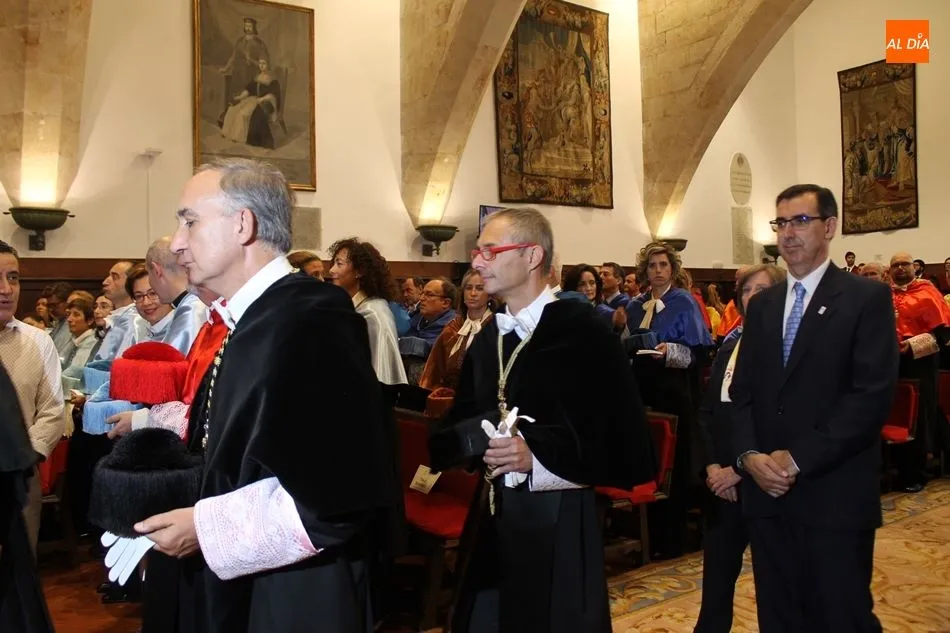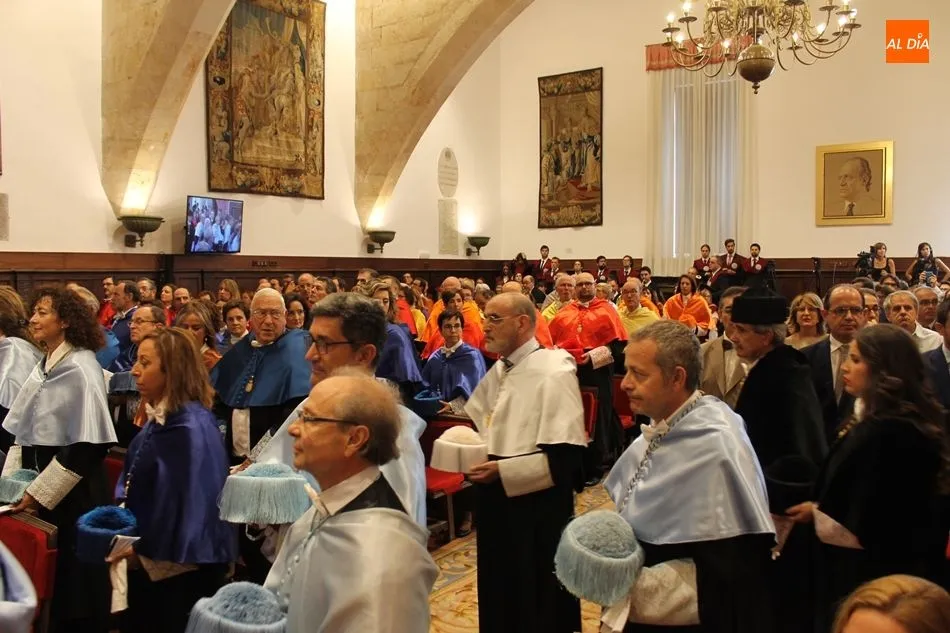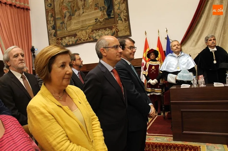 La ceremonia ha contado con la presencia de numerosas autoridades académicas e institucionales entre las que figuran los rectores de las universidades de Valladolid, León y Europea Miguel de Cervantes, Antonio Largo, Juan Francisco García e Imelda Rodríguez, respectivamente; el consejero de Educación de la Junta de Castilla y León, Fernando Rey; el presidente de la Diputación de Salamanca, Javier Iglesias; la subdelegada del Gobierno en Salamanca, Encarnación Pérez; el alcalde de Salamanca, Alfonso Fernández Mañueco; el alcalde de Zamora, Francisco Guarido; el alcalde de Villamayor, Manuel Gago; las senadoras, Rosa Mª López y Esther B. del Brío; el director de la Agencia para la Calidad del Sistema Universitario de Castilla y León, José Ángel Domínguez; el director provincial de Educación de Salamanca, Ángel Morín; o el presidente de la Audiencia Provincial de Salamanca, José Ramón González, entre otros.