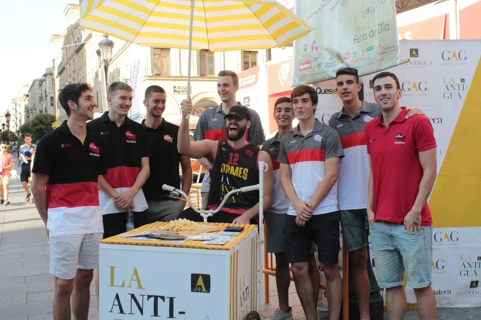 El equipo salmantino La Antigua ? CB Tormes ha querido ?avituallarse? antes del entreno vespertino de este jueves en el stand de la Quesería La Antigua de Fuentesaúco en la plaza de los Bandos. Allí han visitado a su principal patrocinador y el club ha continuado con su campaña de abonados, a punto ya de llegar a los 300, para el equipo de LEB Plata en este mismo lugar.
