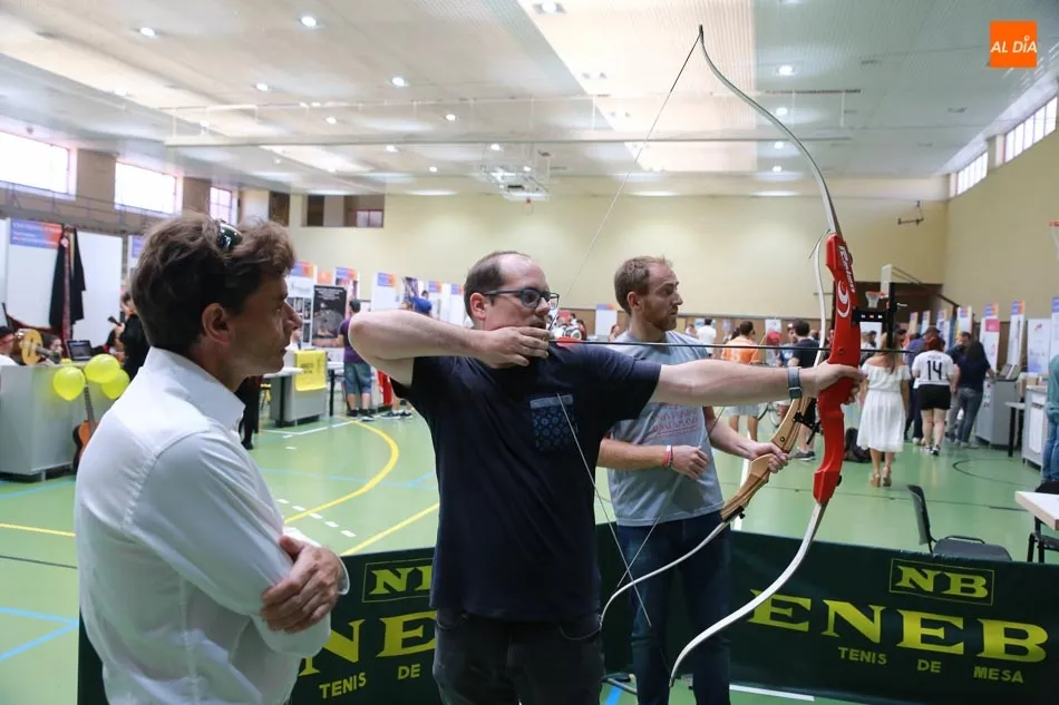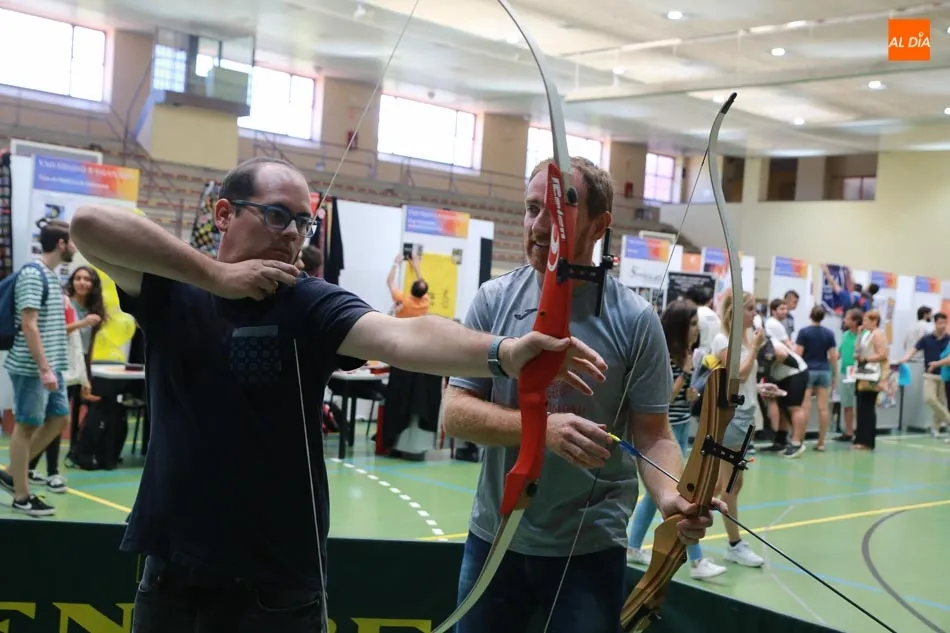 Durante la mañana se han celebrado exhibiciones y actividades deportivas organizadas por el Servicio de Educación Física y Deportes, como escalada en rocódromo, esgrima o tiro con arco. Y el colofón será el concierto de bienvenida, a cargo del grupo TWICE, ganador del V Concurso de Batalla de Grupos USAL.