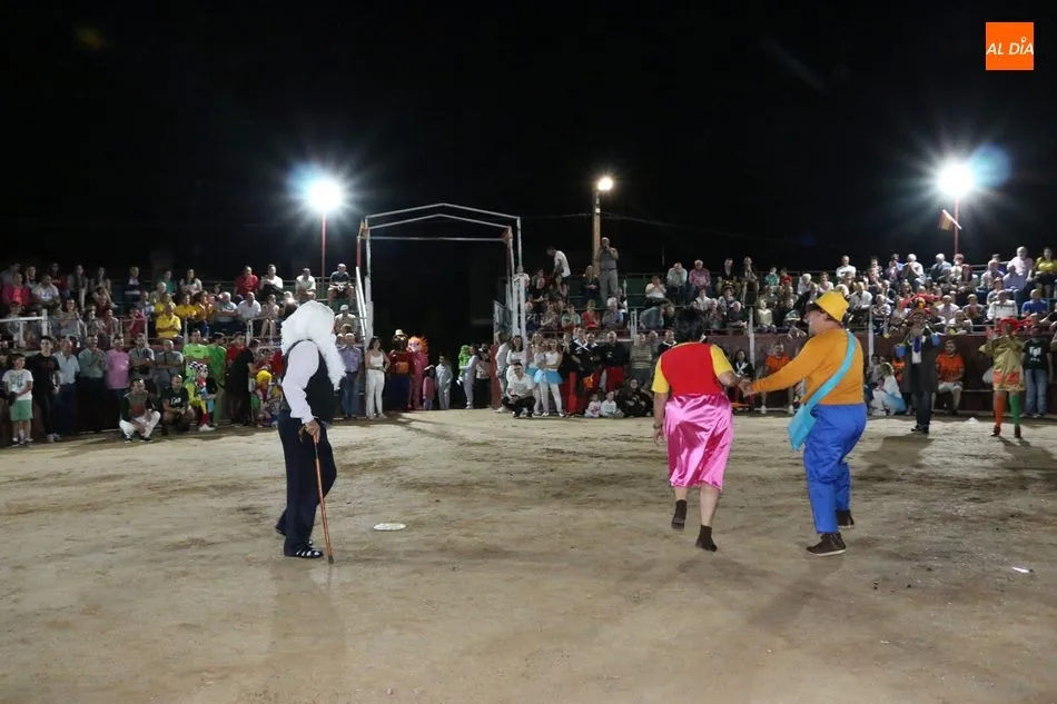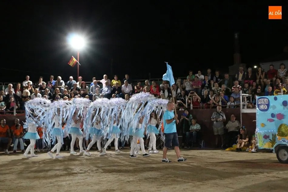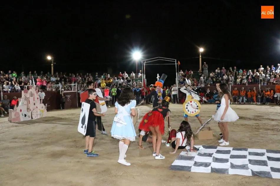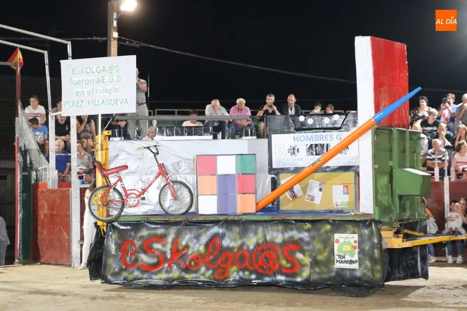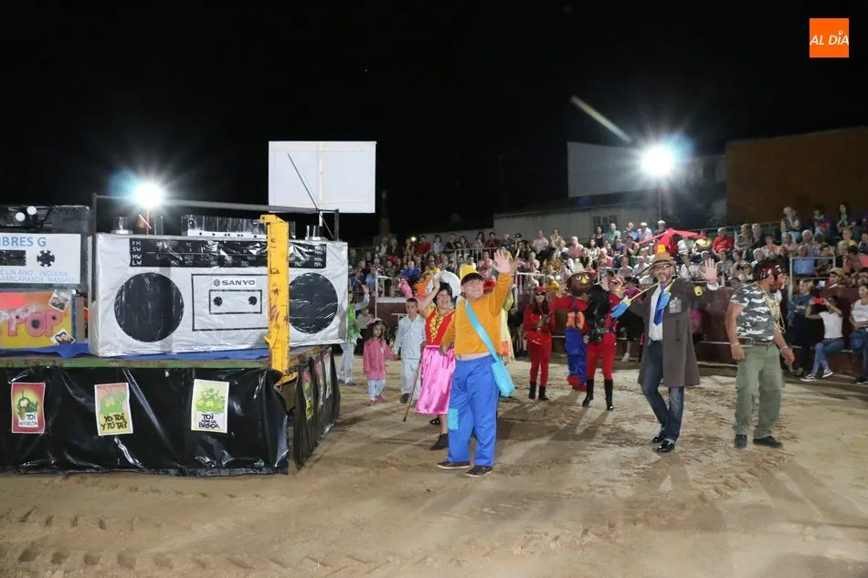 El inicio del programa era para los grupos de peñistas sin carrozas, que darían paso primero a dos grupos infantiles y después a las carrozas de adultos, acto que resultó divertido y vistoso con varias representaciones merecedoras de premio, pero solo había uno infantil y tres de adultos, así que el primero fue para ?Alicia en el país de Barrueco?, de ?Apaga y vámonos?, y los segundos para Los Okupas, por los 800 años de la Usal; y para Bajo el mar, de la peña CD; ambos empates con un segundo premio, mientras que la ganadora fue la carroza Eskolgaos de EGB de la peña Eskolgaos.