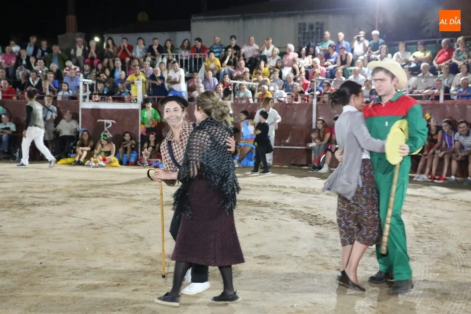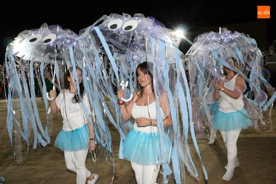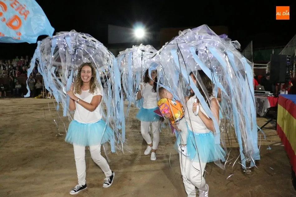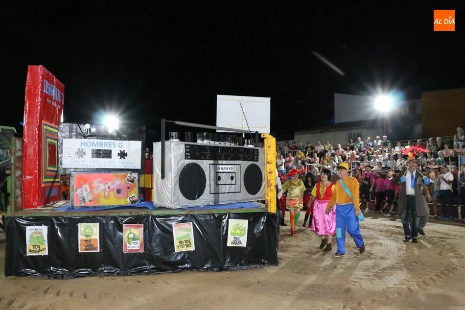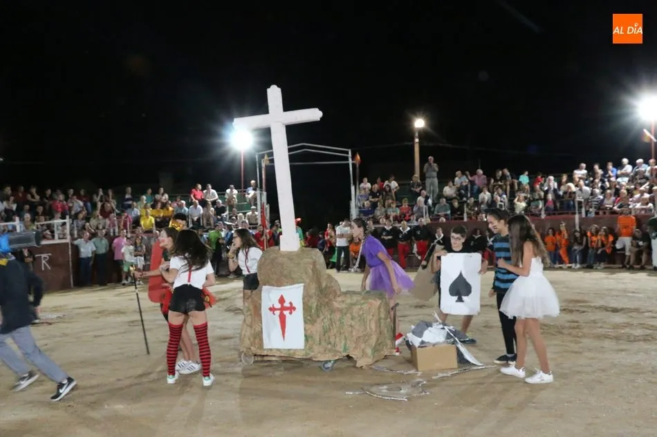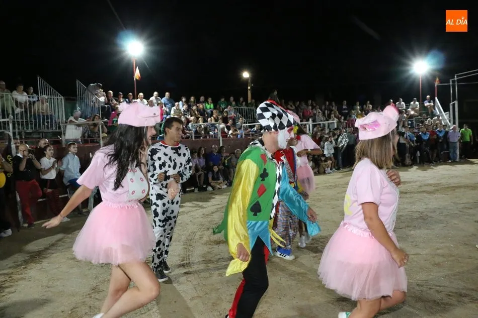 El inicio del programa era para los grupos de peñistas sin carrozas, que darían paso primero a dos grupos infantiles y después a las carrozas de adultos, acto que resultó divertido y vistoso con varias representaciones merecedoras de premio, pero solo había uno infantil y tres de adultos, así que el primero fue para ?Alicia en el país de Barrueco?, de ?Apaga y vámonos?, y los segundos para Los Okupas, por los 800 años de la Usal; y para Bajo el mar, de la peña CD; ambos empates con un segundo premio, mientras que la ganadora fue la carroza Eskolgaos de EGB de la peña Eskolgaos.