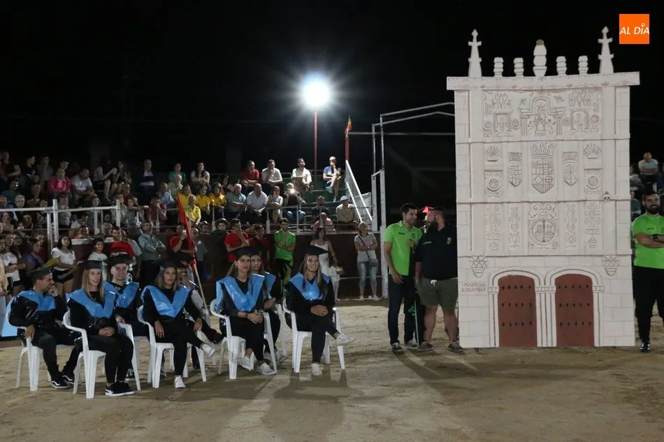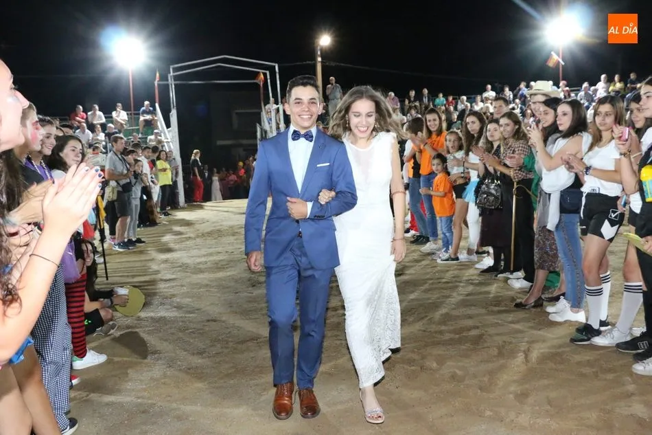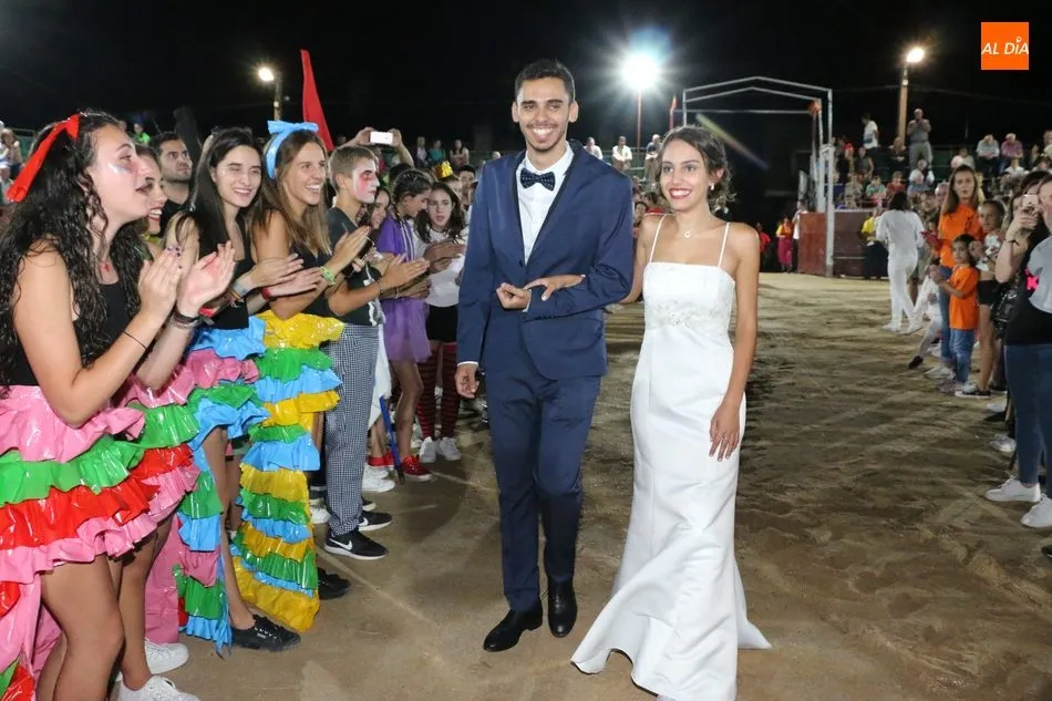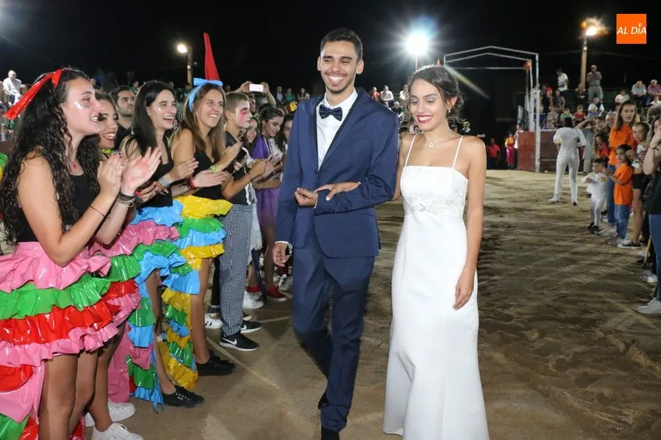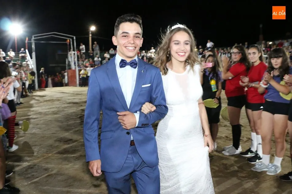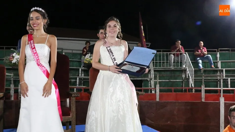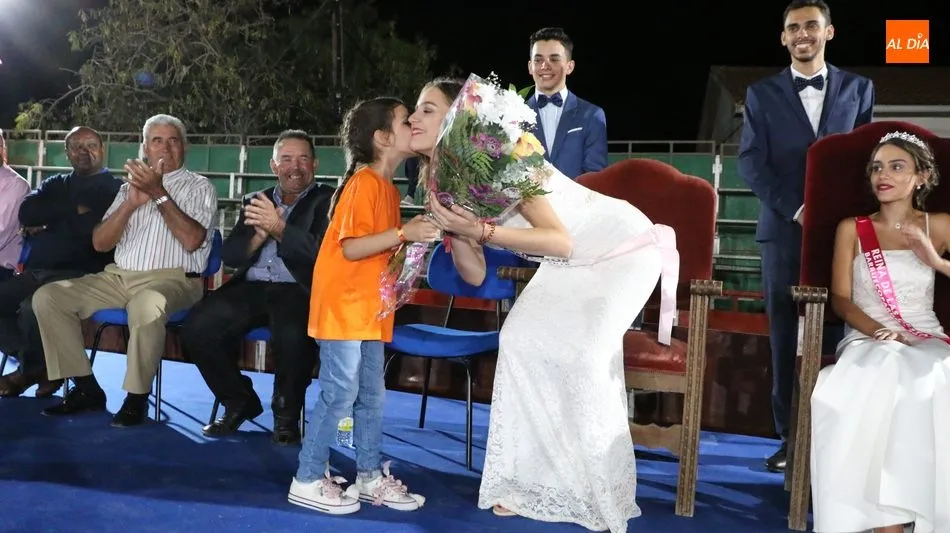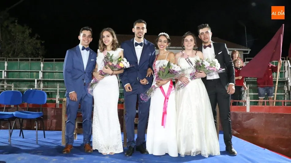 A continuación, la corte de honor de las fiestas recibía sus bandas y ramos de flores, además de ser coronada su reina, papel que ha recaído este año en Marina Romo Santamaría, que está acompañada por Belén Pereira Martín y María Patino Corredera en el papel de damas.