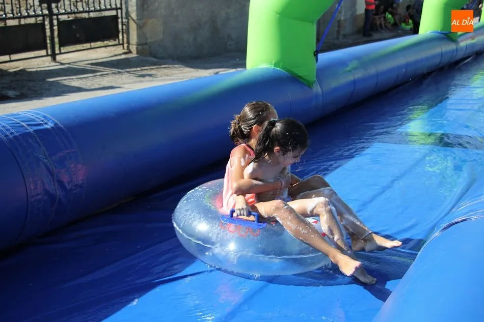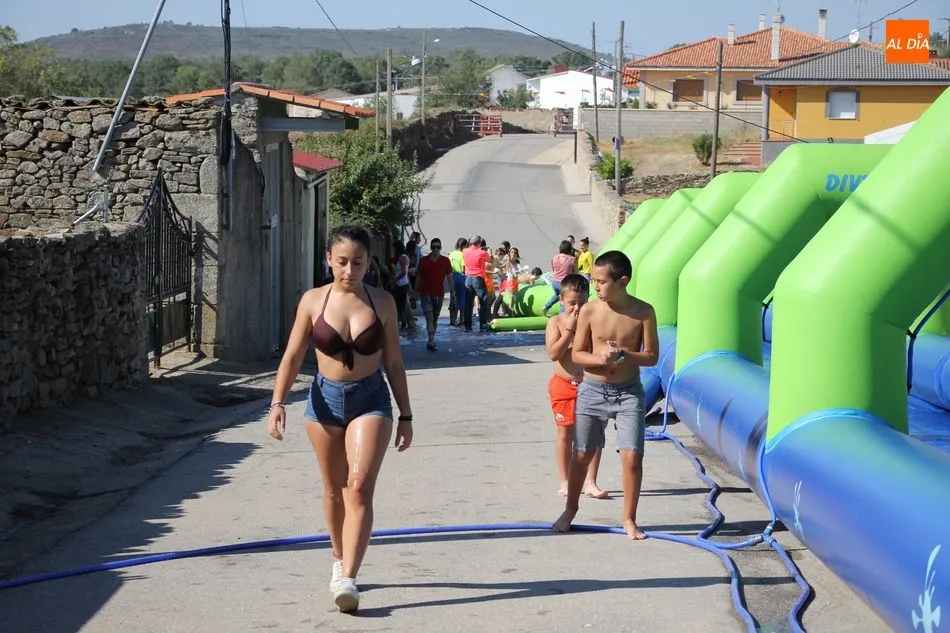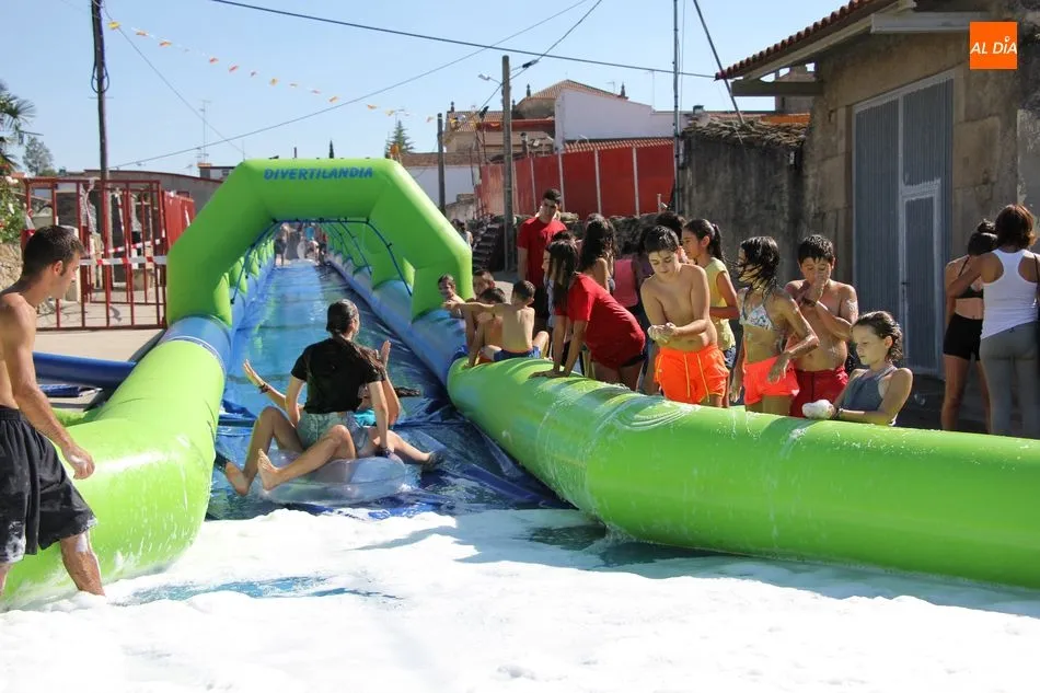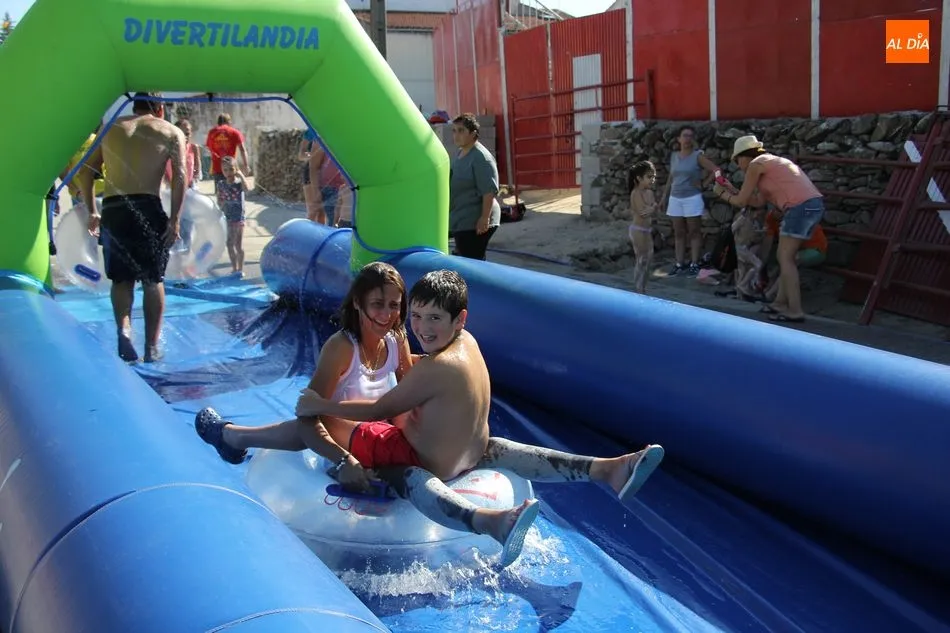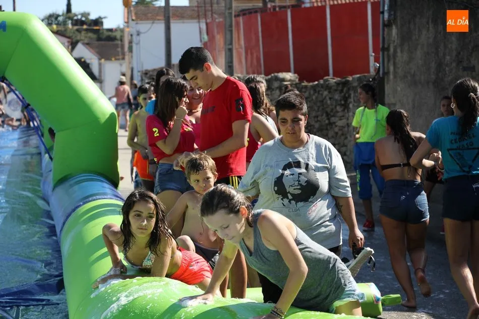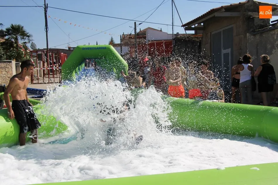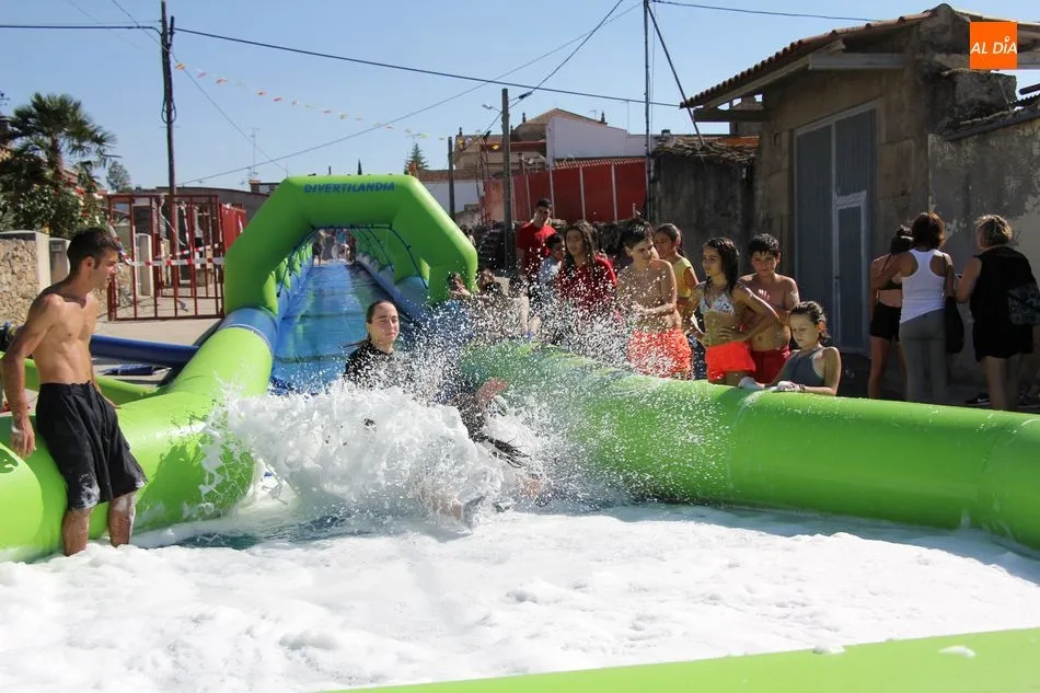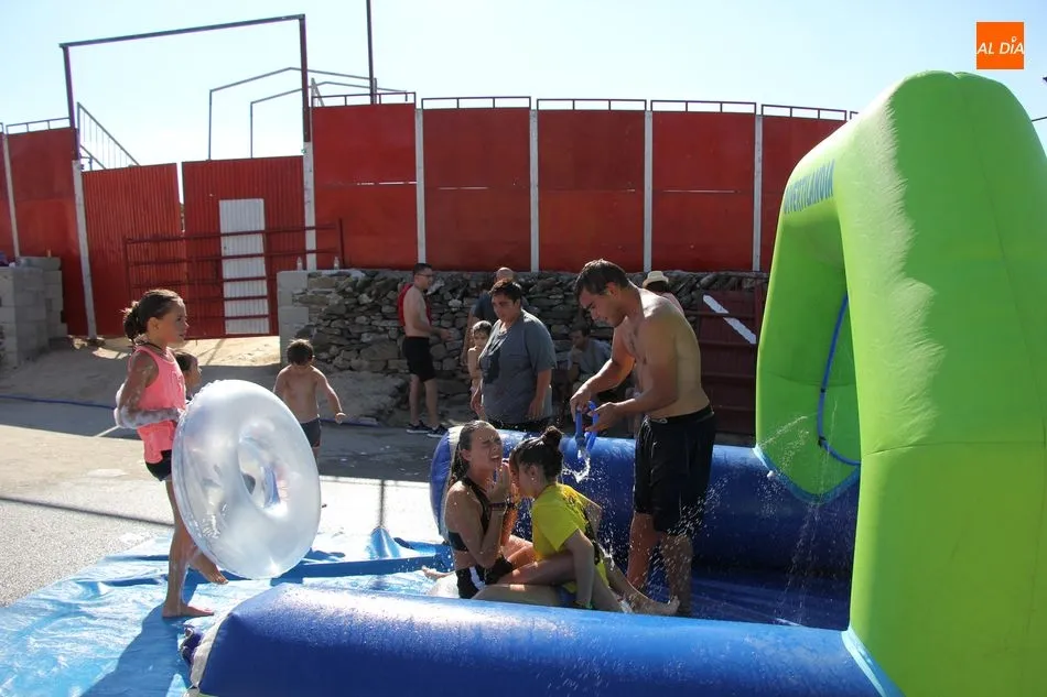 Así, la mañana se iniciaba con un pasacalles en las que las peñas eran las protagonistas, acompañadas por los cabezudos, a los que se sumaron los más pequeños que de esta manera comenzaban su jornada festiva. Una jornada en la que contaron con un parque infantil, durante toda la mañana para disfrute niños y ?no tan niños? de Barruecopardo, y que continuaría tras la comida de peñas -en la que no faltaron las patatas revolconas acompañadas de pan, postre y bebida- con un gran tobogán acuático al que se animaron probar también algunos mayores.