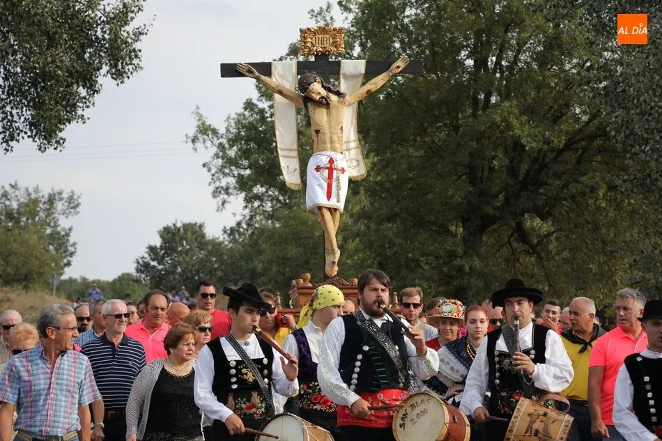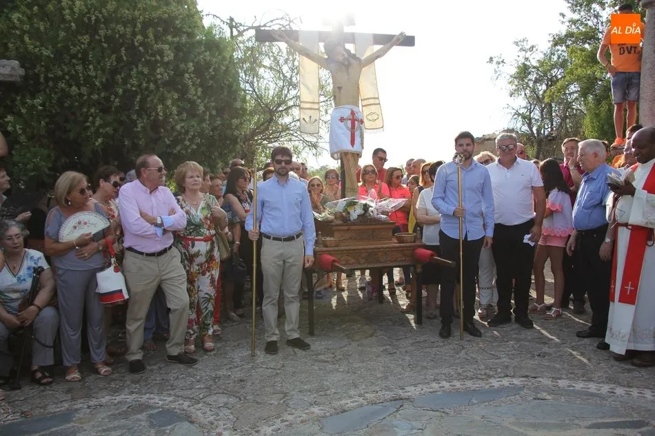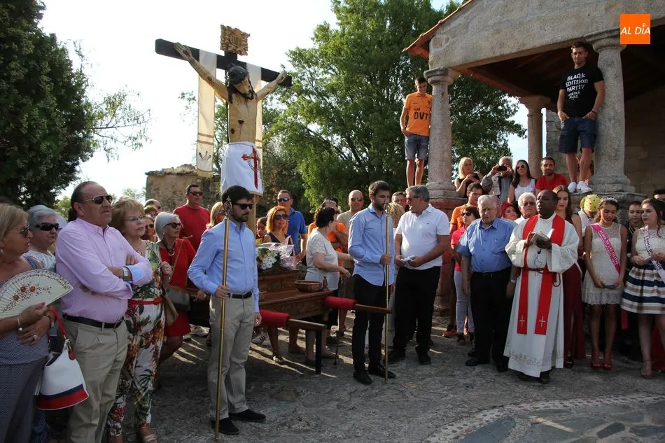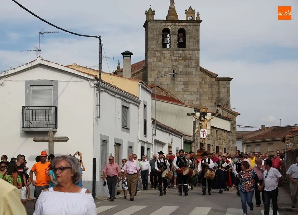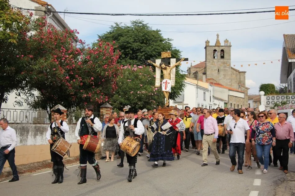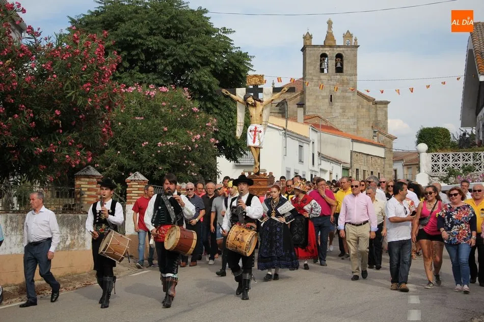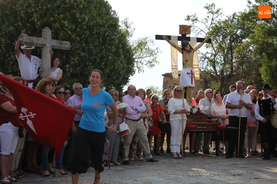 Ya en la tarde, el grupo de folclore Surco ponía la nota charra en la procesión del Cristo camino de su ermita, un acto que fue seguido por cientos de vecinos que no quisieron perderse este extraordinario momento. En la comitiva, además del alcalde Jesús María Ortiz, el párroco Jean Claude y la corte de honor, formada este año por Marina Romo, en el papel de reina, y por Belén Pereira y María Patino como damas.