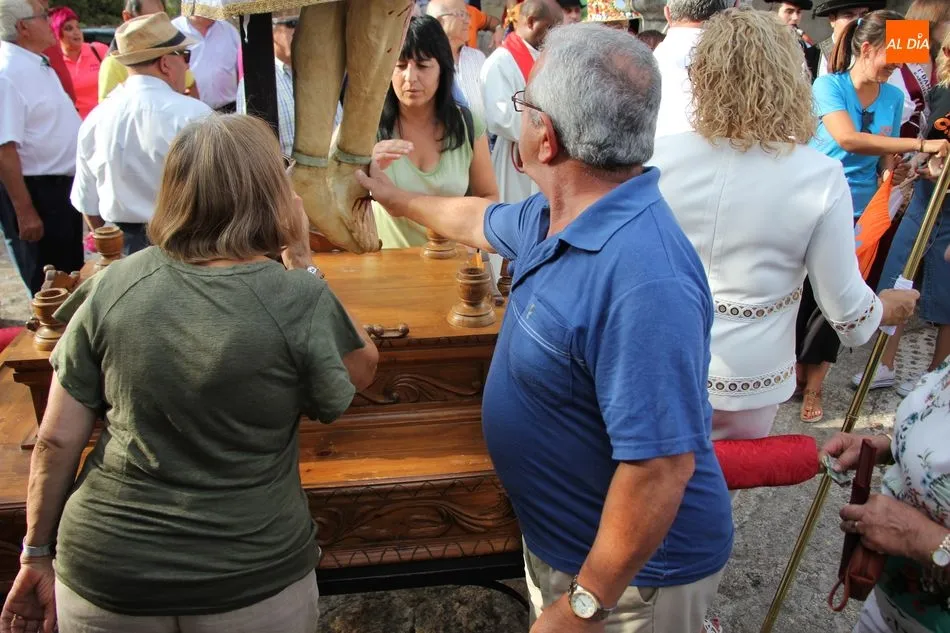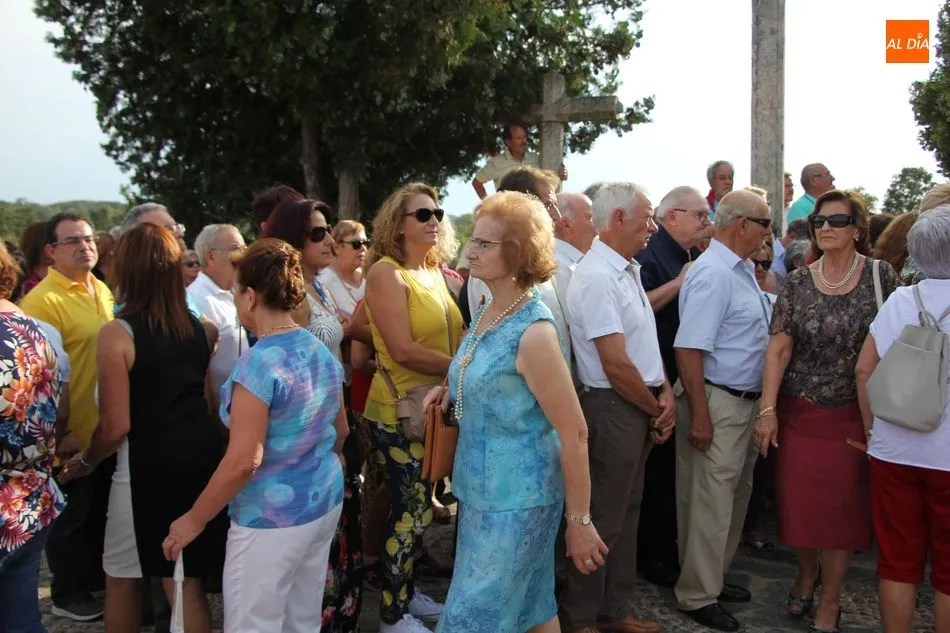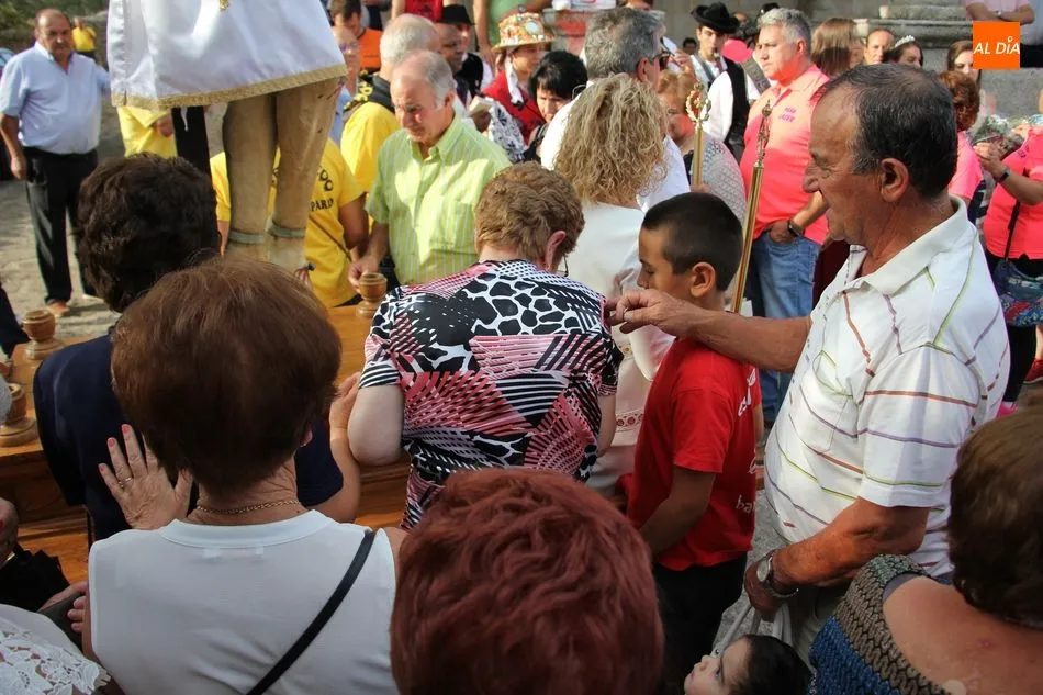 Cientos de vecinos acompañaron al patrón en la procesión hasta la ermita para asistir al ofertorio y al cambio de varas a favor de Luis Manuel Miranda y Pablo Miranda