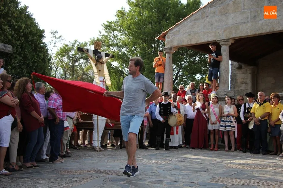 Una vez a las puertas de la ermita, comenzaba el ofertorio para continuar con el baile de la bandera. Finalizada esta ancestral danza, tenía lugar el cambio de varas a favor de los nuevos mayordomos, que lo serán por un año los hermanos Luis Manuel y Pablo Miranda, dándose así por finalizados los actos en honor al Cristo.
