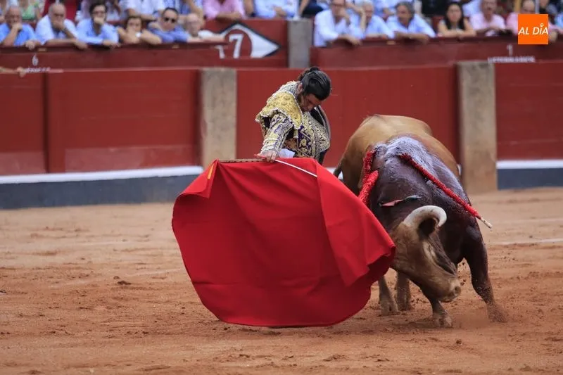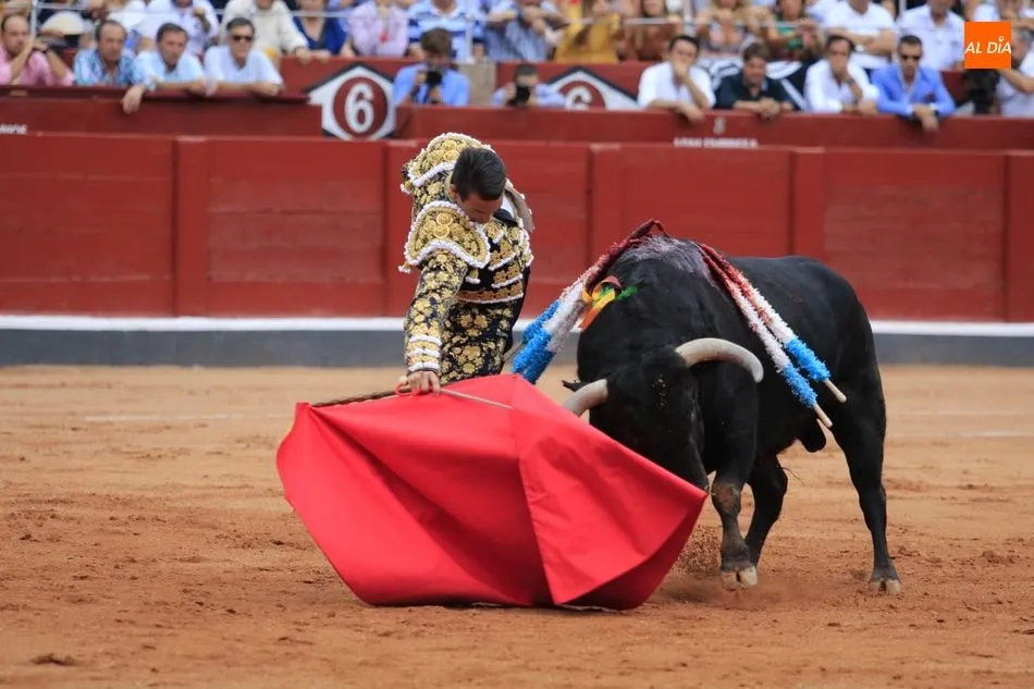 Juan del Álamo enciende a los tendidos con sus verónicas de recibo a un toro que sale con otro son, que empuja en el caballo y obedece en el capote y la muleta. Se desmonteran en banderillas Jarocho y Javier Gómez Pascual. Inicia de rodillas para sacar a los medios en series de muchos pases y poco ajuste con el mejor toro en lo que va de corrida. El público aplaude entusiasmado su toreo despegadote y silencia sin embargo un par de buenos y templados naturales. Entra feamente a matar, pincha y se cobra una estocada. Descabello. Oreja. Toro aplaudido en el arrastre.