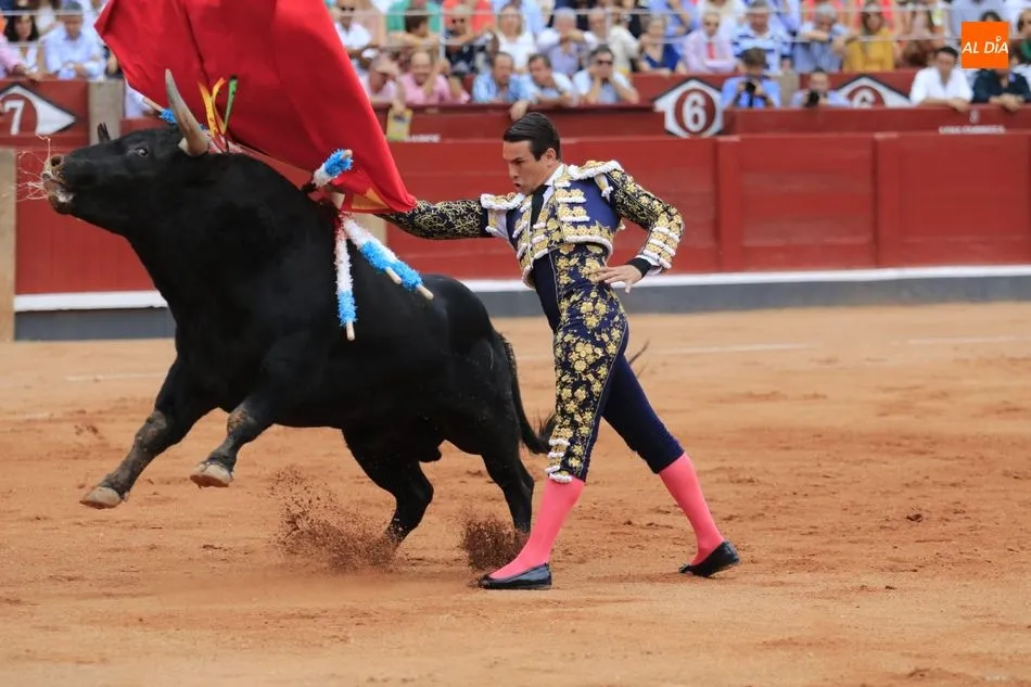 Abanto de salida pero humillando, sale suelto inicialmente el toro con Juan del Álamo persiguiéndolo por el ruedo hasta que Jarocho lo fija y le muestra el camino de la embestida en su capote. Lidia desordenada que se convierte en una capea en el caballo y hermosa media de remate del salmantino. Sale a banderillear Juan del Álamo, que pone en pie a los tendidos tras ser arrollado al salir del primer par. Después de brindar al público inicia por alto y saca a los medios a un gran toro que humilla con clase y codicia por ambos pitones. Mata de una media tendida y descabello. Oreja que le abre la tercera puerta grande de la feria.