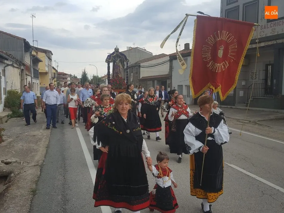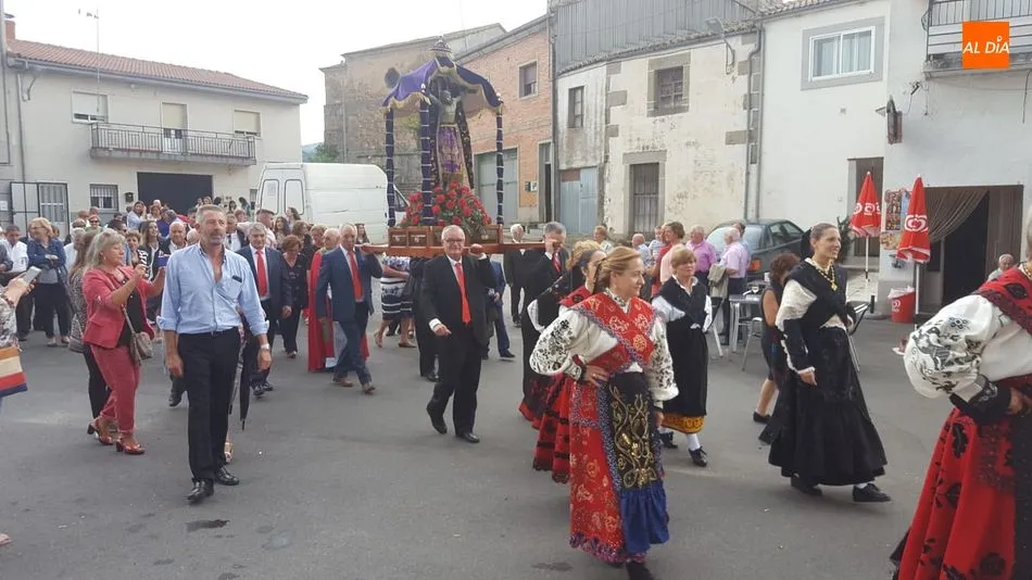 Sorihuela se vistió con sus mejores esta tarde para vivir el día grande de sus festejos en honor al Santísimo Cristo de Valvanera. Por la mañana se celebró la tradicional misa cantada en honor al Cristo, mientras que por la tarde se preparó todo para la procesión con la imagen del Cristo hasta la ermita. Numerosos vecinos se fueron sumando a la comitiva que encabezaban los pendones y el grupo folclórico Velaí, además de las autoridades de la localidad, con la alcaldesa Nieves García a la cabeza, acompañados de otros alcaldes de la zona.