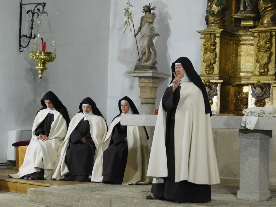 Todo crece y se complementa, y al igual que el nombre de Martiago con sus dos raíces, o el puente viejo de la localidad que se solapa en el nuevo y que se pueden contemplar juntos cuando la bajada de las aguas lo permiten, Teresa de Jesús supo bien qué unir a su nombre que hablara con claridad de quién era y con quién quería caminar. Algo tan sencillo, difícil de entender en una cerrada época en la que ser mujer, inteligente, sabia teóloga y sencilla monja a la vez, era sospechoso de herejía, máxime si se levanta admiración entre los hombres más poderosos de la tierra como el rey o el inquisidor general. Todo queda plasmado de forma tan evidente gracias a los actores de ?Teresa, la jardinera de la luz? que parece sencillo sublimar la normalidad o viceversa. Los hábitos de las hermanas carmelitas son el vestuario correcto y apropiado para hablar de su maestra y madre, porque el público está perfectamente integrado en el contexto temporal al que ?Lazarillo de Tormes? les conduce para que haga el mismo recorrido espacial y mental que los personajes realizan a lo largo de toda la puesta en escena para traer a nuestro presente a alguien que ya se entiende como completamente actual. El mismo maestro Salinas y su repertorio parece formar parte de nuestras vidas. El Cristo de los Remedios que en este 14 de septiembre celebra Martiago con tanto fervor, fue gran protagonista sin duda para sus vecinos, que ante la historia vista en la escena de su parroquia, a la que ésta aportó su propio púlpito, pudieron encontrar el compendio de los que Teresa viera en Él.