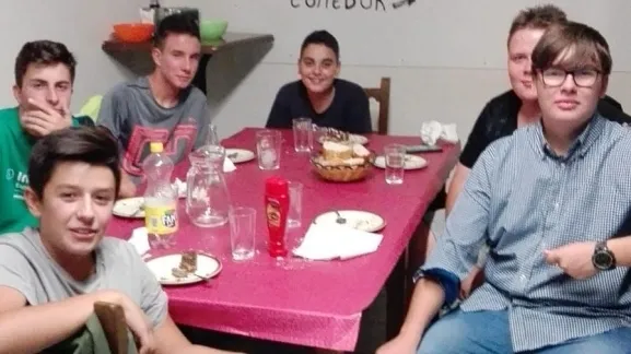 Hugo (centro) celebraba este sábado su cumpleaños, y lo hacía en compañía de algunos de sus amigos, que lo son desde pequeños. Todos ellos compartieron un convite para festejar este día.