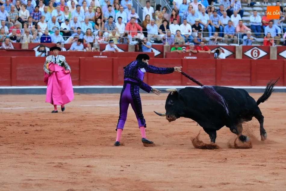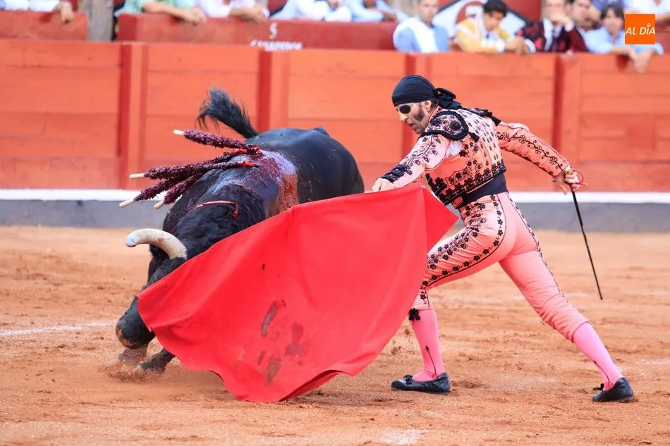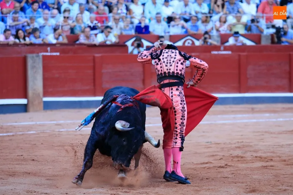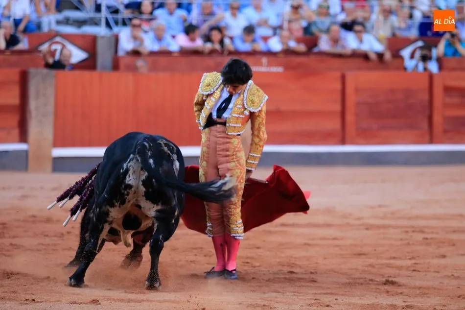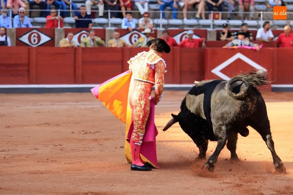 Y vino el de Ledesma con la madurez entendida, sin adornos ni decoros, vino a justificar su inclusión sin alardes de nada, sólo con la honradez del que le avala una vida entera de fidelidad a una profesión, a un concepto, el suyo, pero más pausado y menos enrazado para ser capaz de imponerse a ?Cartuchero? sin exigencias, entre algodonales para lograr así que las series fluyeran, necesariamente cortas. El pulso y el tacto conducían con largura la calidad dormida del animal. Le exigió para llegar arriba y le quiso bajar la mano al noble del Puerto, parado y descastado, y apostó Domingo por la verdad en las toques para lograr arrebatar también con la zurda naturales a media altura del pozo seco, un esfuerzo visto arriba para premiar la obra, como premio llevó tras cuajar a su segundo, ?Billetito?, que le permitió sellar una veintena de muletazos más en un mismo acto de fe y de querer como el anterior. Porque también le faltó raza a este del Puerto de San Lorenzo y volvió a apostar Domingo por ir marcando el camino, alternando mano bajo y media altura, siempre llevándole hacia adelante, ganando terrenos, sin pasajes técnicamente perfectos, pero dando todo lo que dentro llevaba para acabar hilvanando por ambos pitones, no más de lo que el oponente le permitía. Logró el objetivo, y salió Domingo de La Glorieta como quien vuelve al origen de todo con la madurez interiorizada, con la raza ya un lado pero con la afición de siempre para llegar al hotel sabiendo que había cumplido.