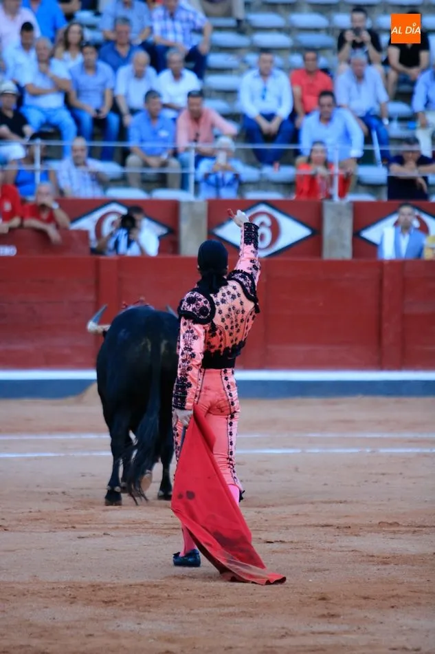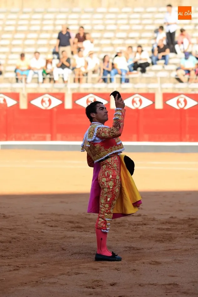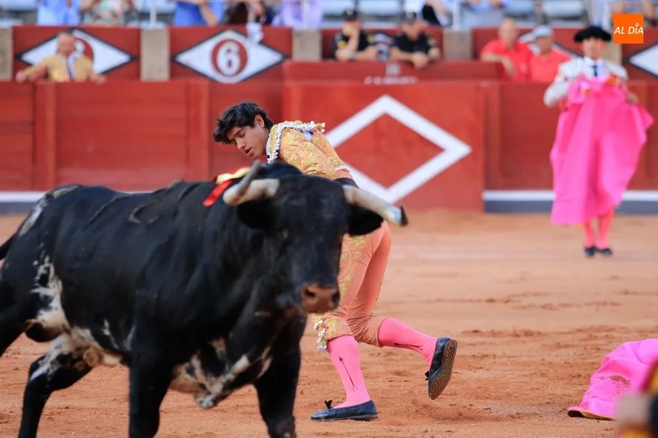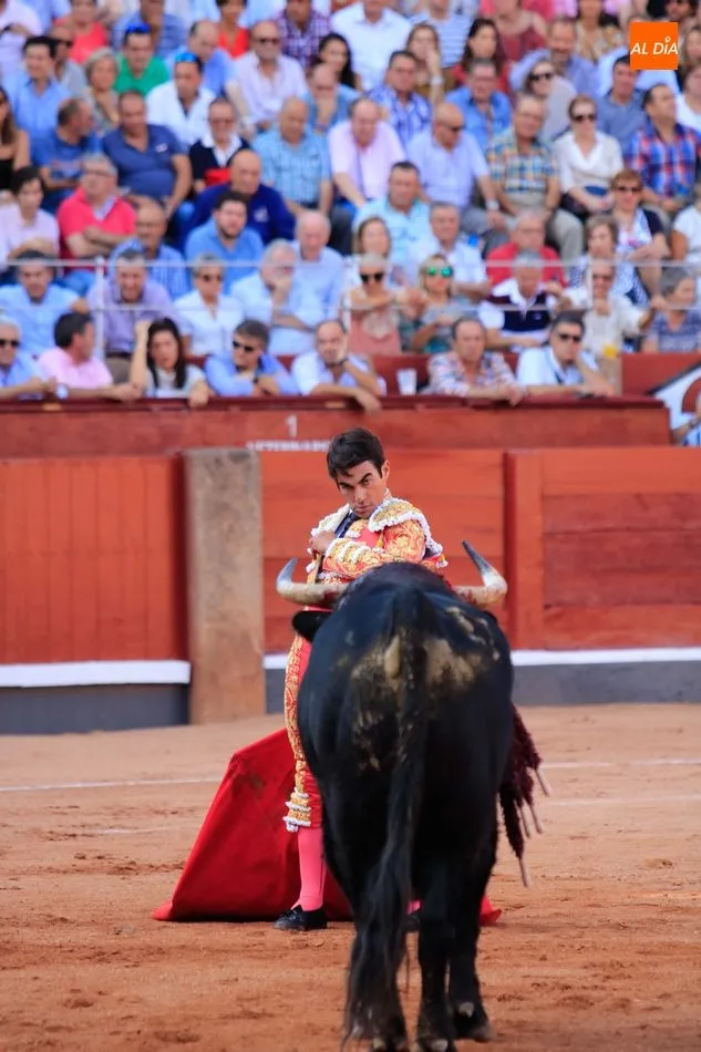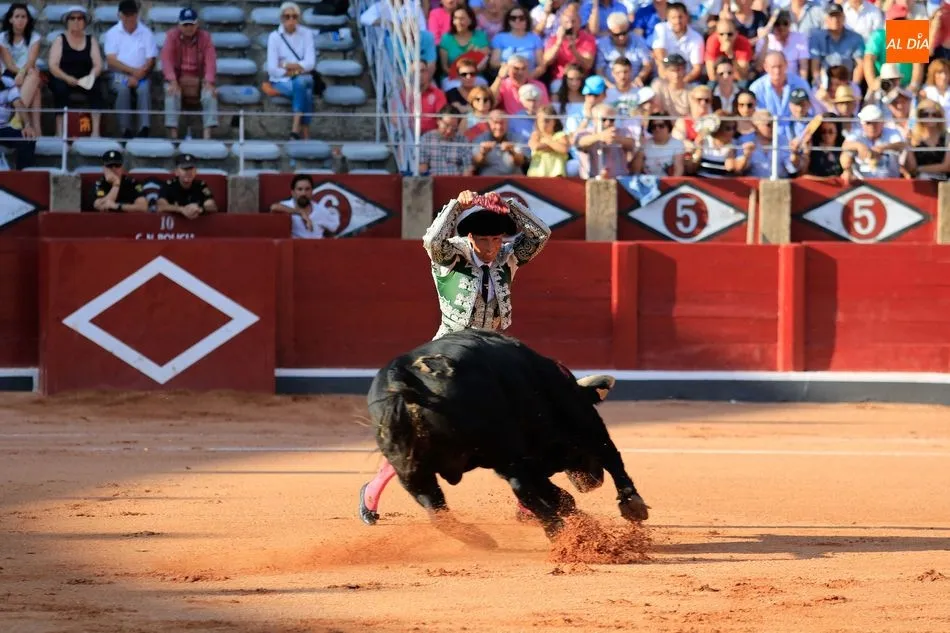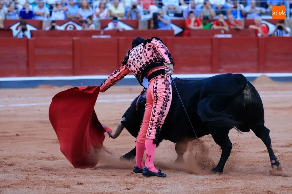 Y vino el de Ledesma con la madurez entendida, sin adornos ni decoros, vino a justificar su inclusión sin alardes de nada, sólo con la honradez del que le avala una vida entera de fidelidad a una profesión, a un concepto, el suyo, pero más pausado y menos enrazado para ser capaz de imponerse a ?Cartuchero? sin exigencias, entre algodonales para lograr así que las series fluyeran, necesariamente cortas. El pulso y el tacto conducían con largura la calidad dormida del animal. Le exigió para llegar arriba y le quiso bajar la mano al noble del Puerto, parado y descastado, y apostó Domingo por la verdad en las toques para lograr arrebatar también con la zurda naturales a media altura del pozo seco, un esfuerzo visto arriba para premiar la obra, como premio llevó tras cuajar a su segundo, ?Billetito?, que le permitió sellar una veintena de muletazos más en un mismo acto de fe y de querer como el anterior. Porque también le faltó raza a este del Puerto de San Lorenzo y volvió a apostar Domingo por ir marcando el camino, alternando mano bajo y media altura, siempre llevándole hacia adelante, ganando terrenos, sin pasajes técnicamente perfectos, pero dando todo lo que dentro llevaba para acabar hilvanando por ambos pitones, no más de lo que el oponente le permitía. Logró el objetivo, y salió Domingo de La Glorieta como quien vuelve al origen de todo con la madurez interiorizada, con la raza ya un lado pero con la afición de siempre para llegar al hotel sabiendo que había cumplido.