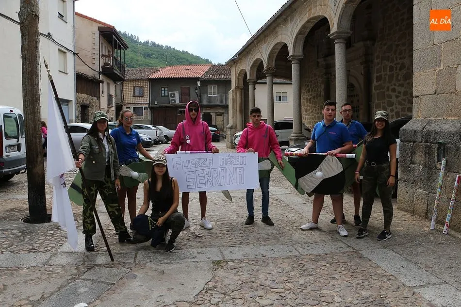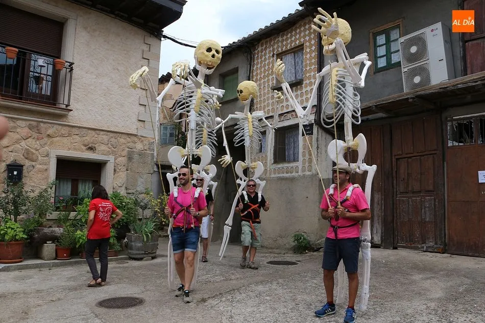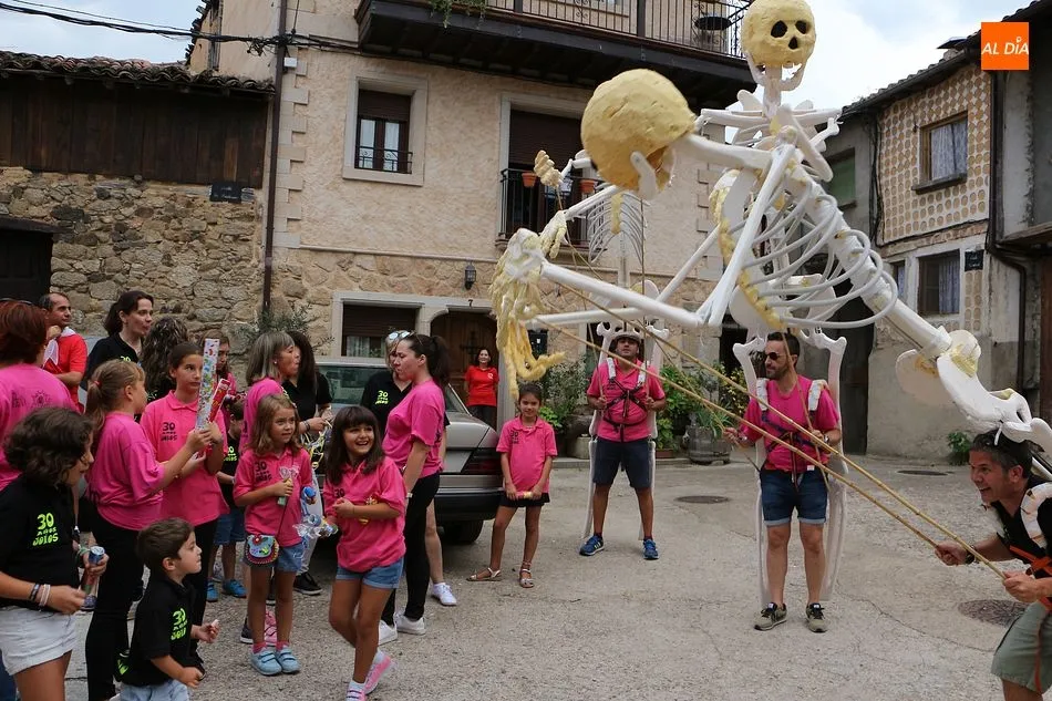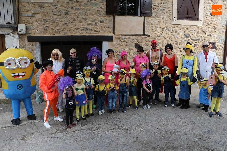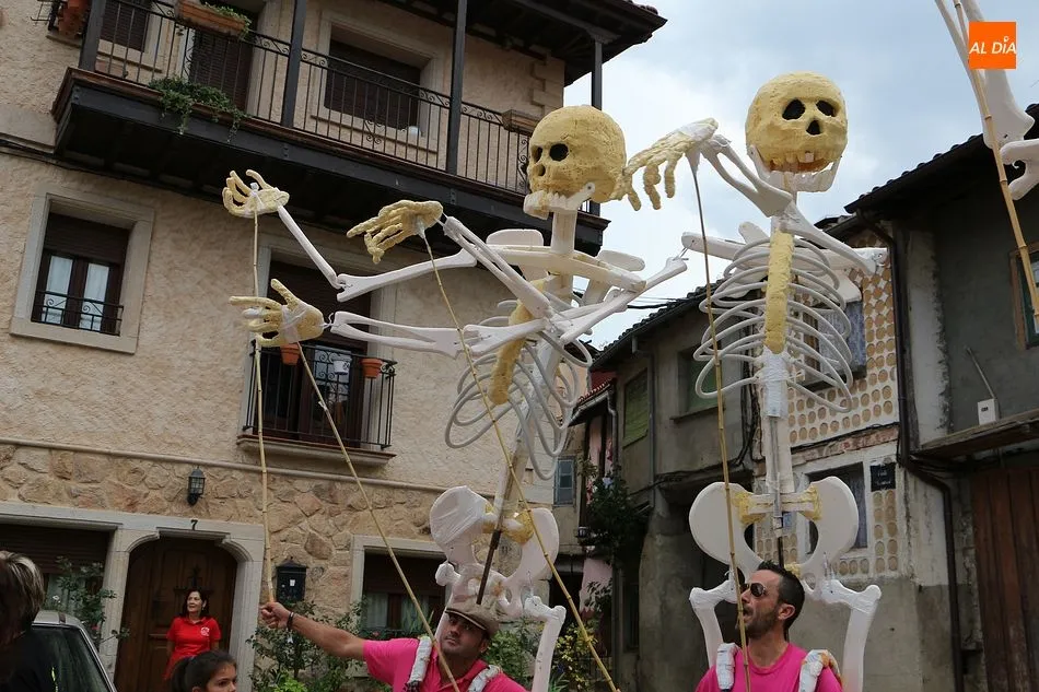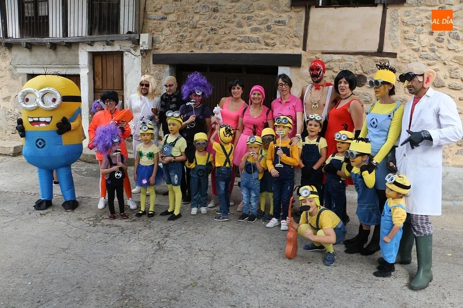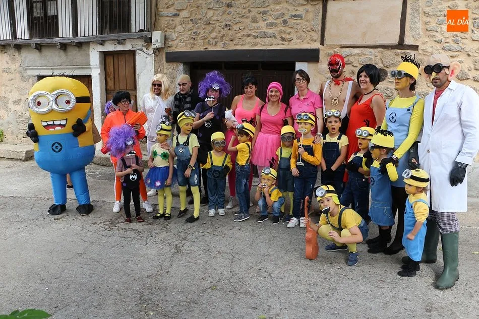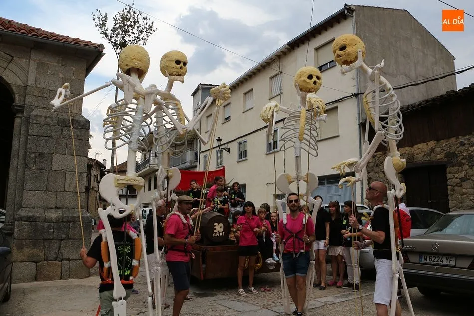 Los primeros en deleitar al público fueron los propios peñistas, con el tradicional desfile de peñas desde la iglesia hasta la plaza. La colección de disfraces y carrozas fue muy variado este año. La peña El Deo Joío, mayordomos del Cristo, acudieron con numerosos niños repartiendo caramelos en su carroza, además de presentar la sensación de la tarde, cuatro disfraces de esqueletos gigantes que ya atrajeron la atención en la verbena del viernes por la noche. La reina de las fiestas, Lucía López, contó con su propia carroza, seguida de un grupo de vecinos disfrazados de Minions, otros de dominó y unos jóvenes disfrazados de la Fuerza Aérea Serrana. Todos con gran diversión dieron varias vueltas a la plaza precedidos de la música de los dulzaineros.
