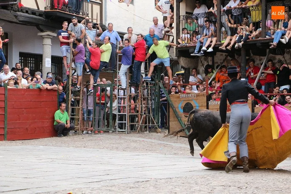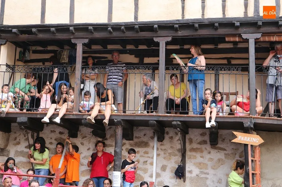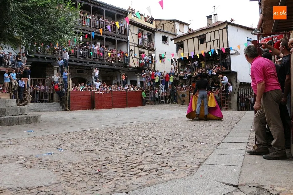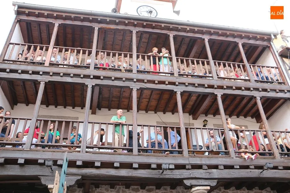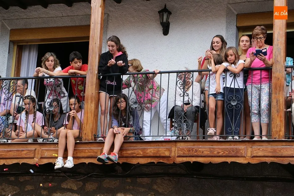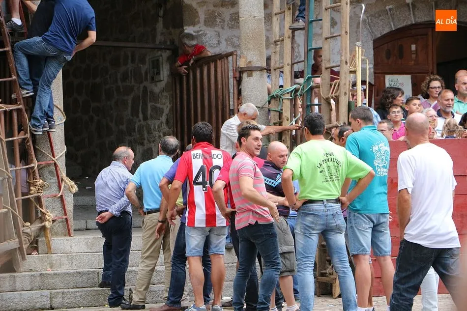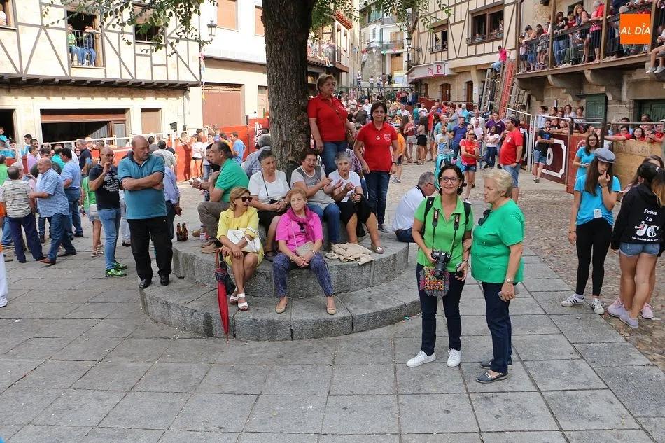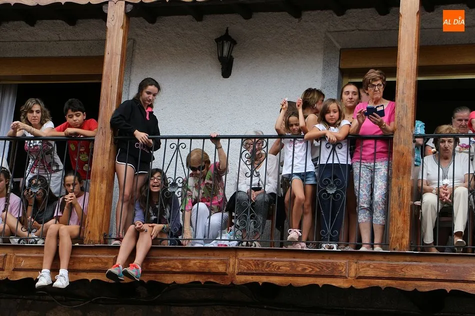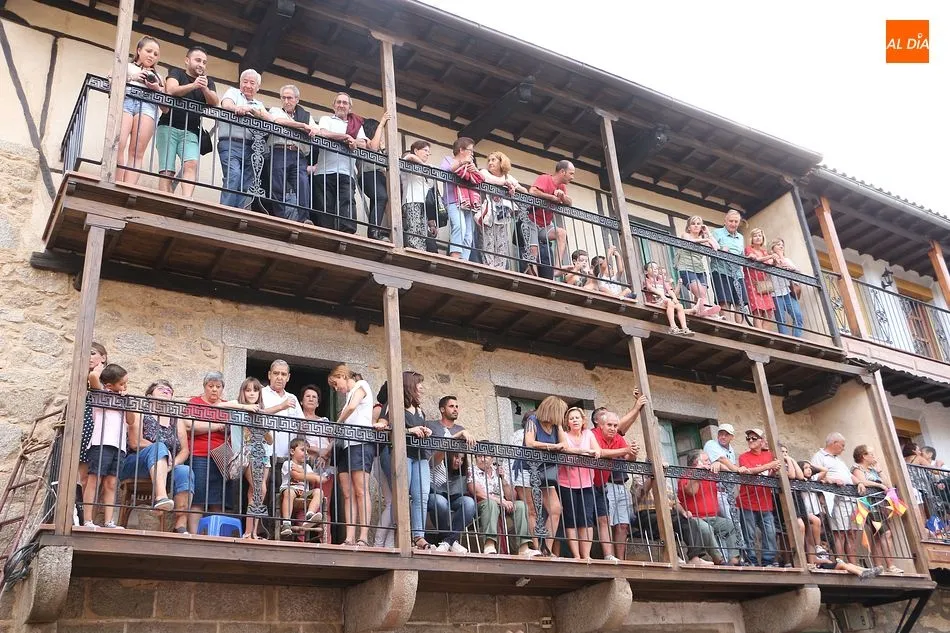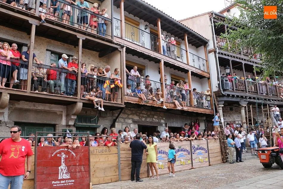 La Plaza Mayor de San Esteban de la Sierra fue hoy una vez más el centro neurálgico de los festejos del Cristo. La Plaza, que se terminó de cerrar para el festejo taurino, se empezó a llenar de gente a primera hora de la tarde. Cientos de personas abarrotaron las ventanas, balcones, burladeros e incluso postes y escaleras, situados en cualquier esquina para poder ver el espectáculo.