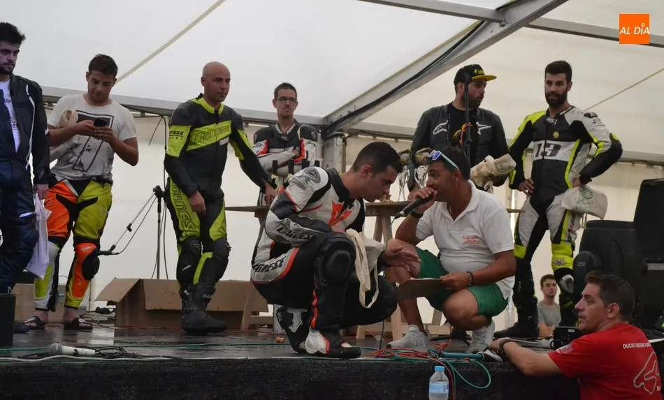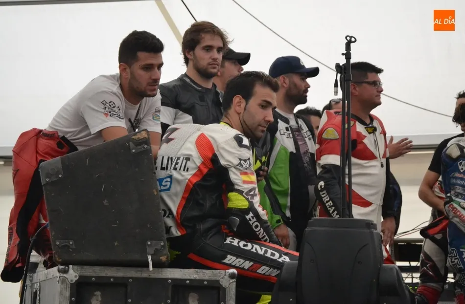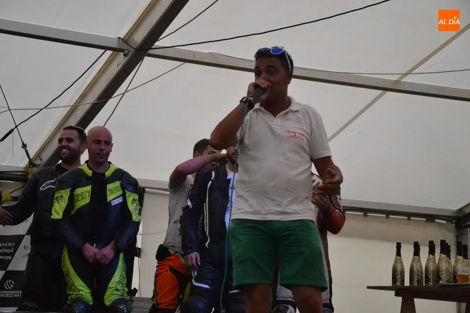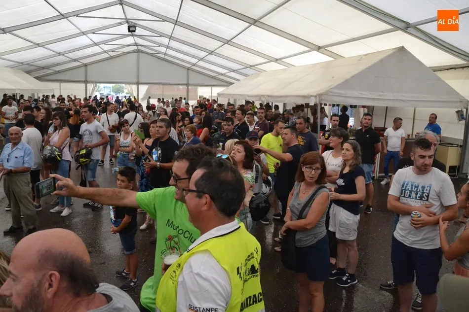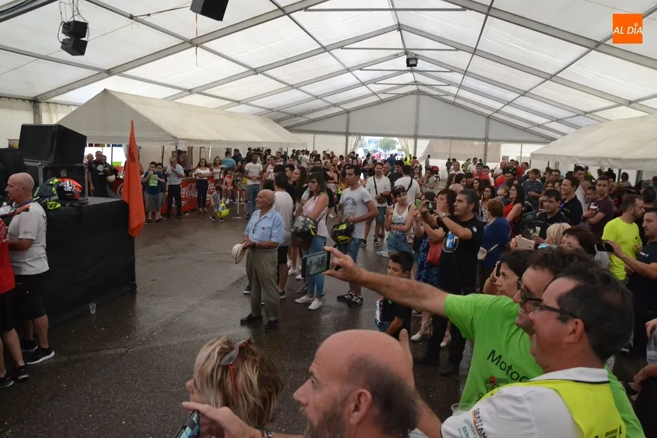 Un brutal aguacero devuelve todo el sabor de antaño a la Concentración Mototurística   | Imagen 2Sin embargo, al mismo tiempo que se desarrollaba la entrega de premios, dejó de llover, lo que hizo por un lado que parte del público de la carpa se pasase por la zona donde estaban los boxes de los moteros, y por otro, que el circuito se secase a toda velocidad (hacía calor pese al agua), por lo que los moteros insistieron en correr.