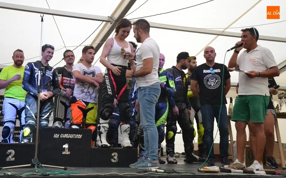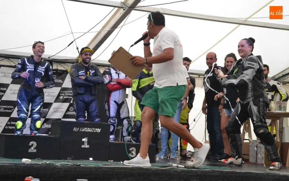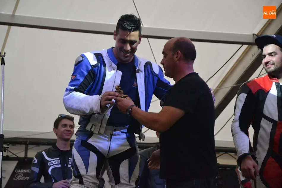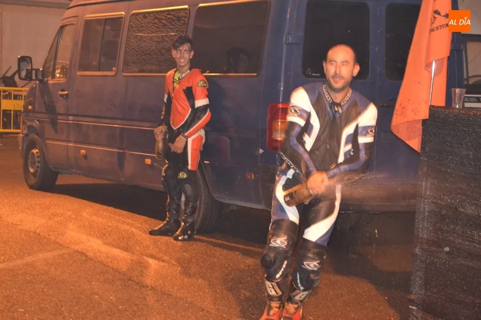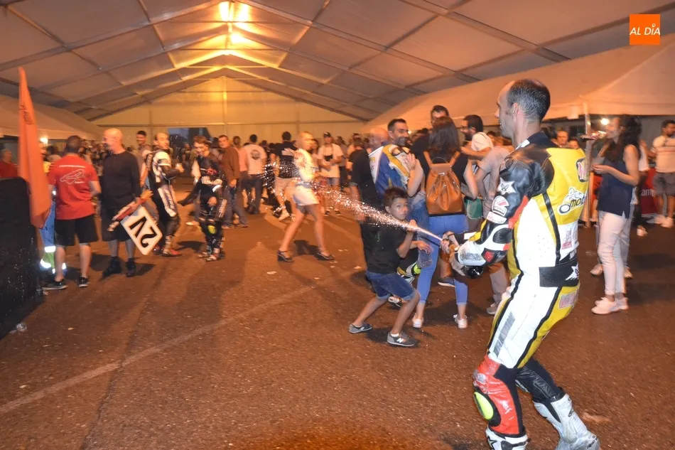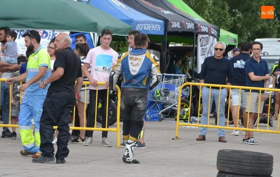 Un brutal aguacero devuelve todo el sabor de antaño a la Concentración Mototurística   | Imagen 2Sin embargo, al mismo tiempo que se desarrollaba la entrega de premios, dejó de llover, lo que hizo por un lado que parte del público de la carpa se pasase por la zona donde estaban los boxes de los moteros, y por otro, que el circuito se secase a toda velocidad (hacía calor pese al agua), por lo que los moteros insistieron en correr.