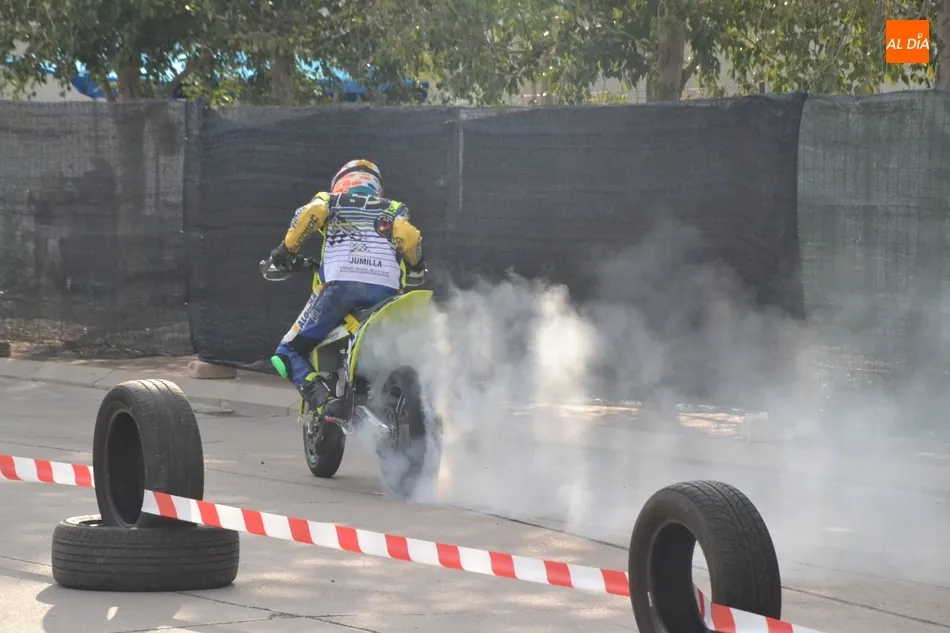 Un brutal aguacero devuelve todo el sabor de antaño a la Concentración Mototurística   | Imagen 1La tarde empezó con los entrenamientos de los moteros de los 3 grupos de la modalidad de pit bike (en total hubo 31 pilotos de esta modalidad, entre ellos 3 féminas), y una primera exhibición de los pilotos de supermotard. A continuación, llegó la hora de desarrollar la carrera del primer grupo de pit bike, que arrancó a las 18.24 horas con el cielo entremezclando sol y nubes, pero sin aparente riesgo de lluvia (sí es verdad que había caído alguna gota muy suelta durante los entrenamientos).