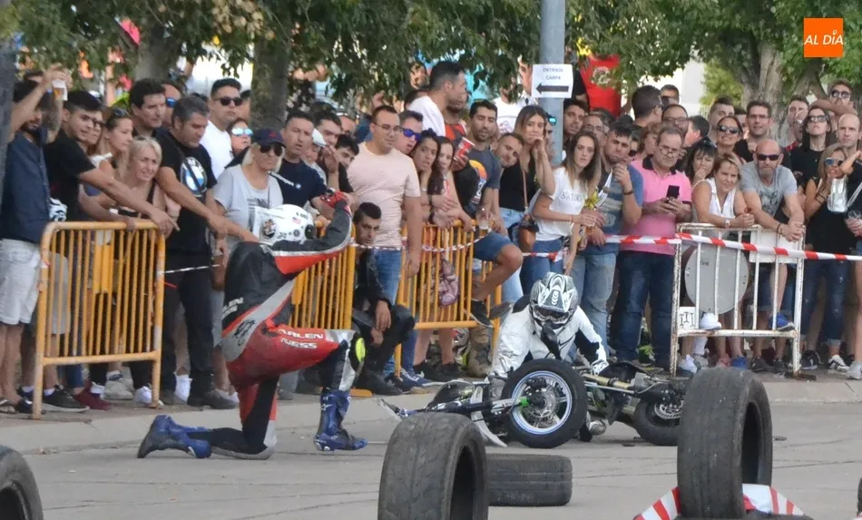 Si en la última Concentración en septiembre, en 2014, toda la jornada del sábado estuvo ?revuelta? -poniéndose a llover torrencialmente casi a la misma hora-, este año el cielo parecía tranquilo, y de hecho se estaba disfrutando sin el más mínimo rastro de paraguas del gran evento motero de la Concentración de este año: las exhibiciones de pit bike y supermotard. Sin embargo, parece que en un momento dado el cielo dijo ?esto no puede ser? y en ?literalmente- menos de un minuto se pasó de la más absoluta calma a un brutal aguacero, lo que evidentemente alteró el programa por completo.