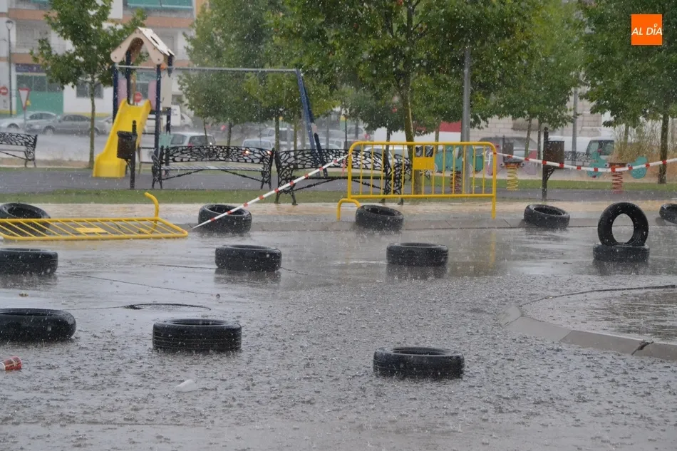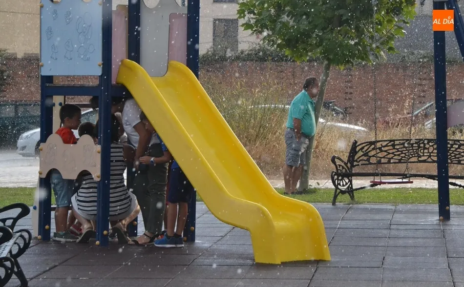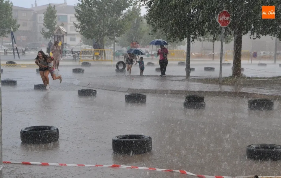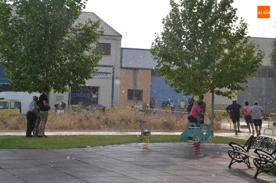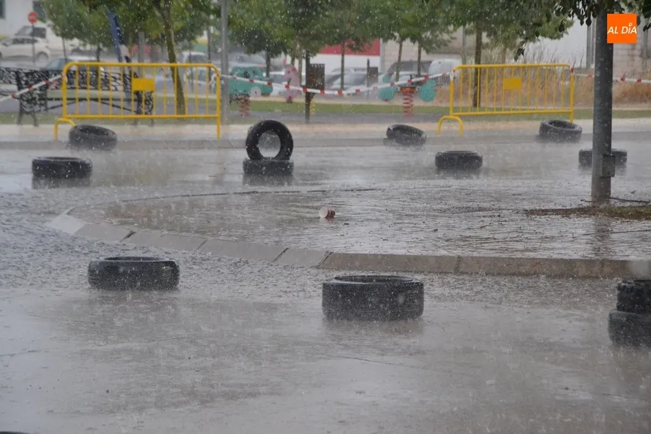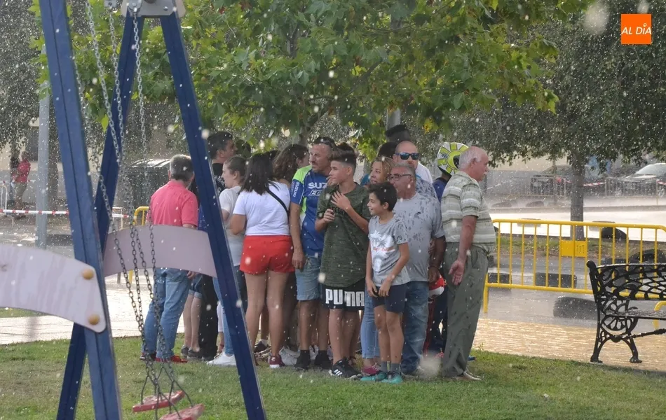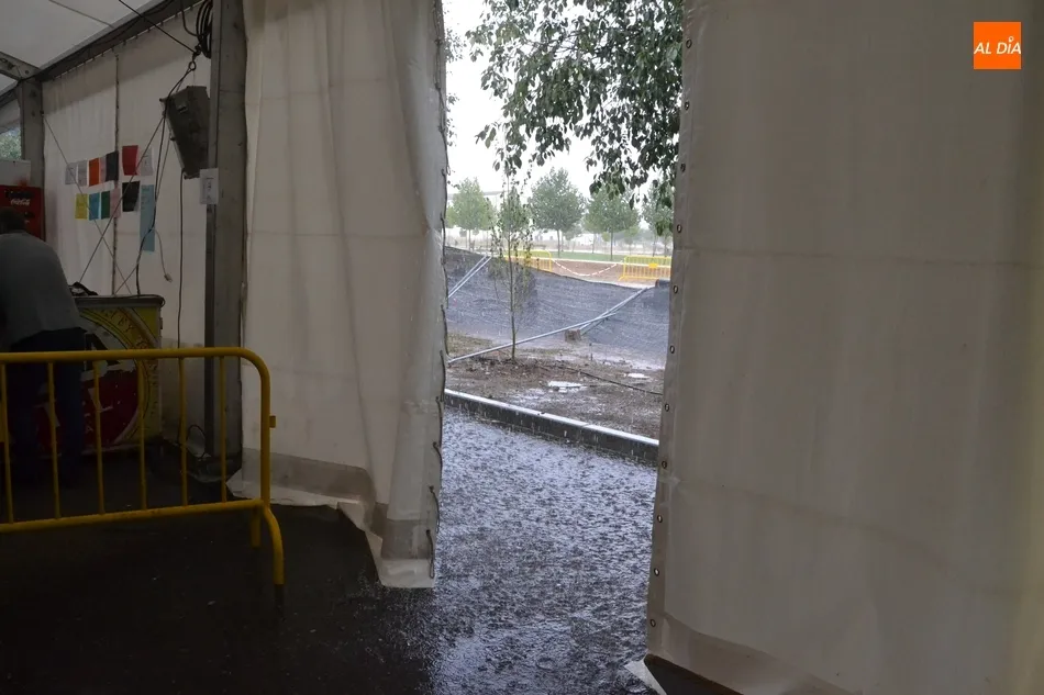 Cuando se llevaban exactamente 7 minutos de carrera, y de forma repentina, empezó a caer agua, y lo que es peor, con virulencia. Todos los espectadores que estaban presenciando las carreras corrieron a buscar refugio. Aquellos que estaban del lado de la carpa rápidamente se metieron en su interior, teniendo más problemas los del otro lado, que buscaron edificios cercanos, árboles o incluso los juegos del parque infantil anexo para cobijarse.