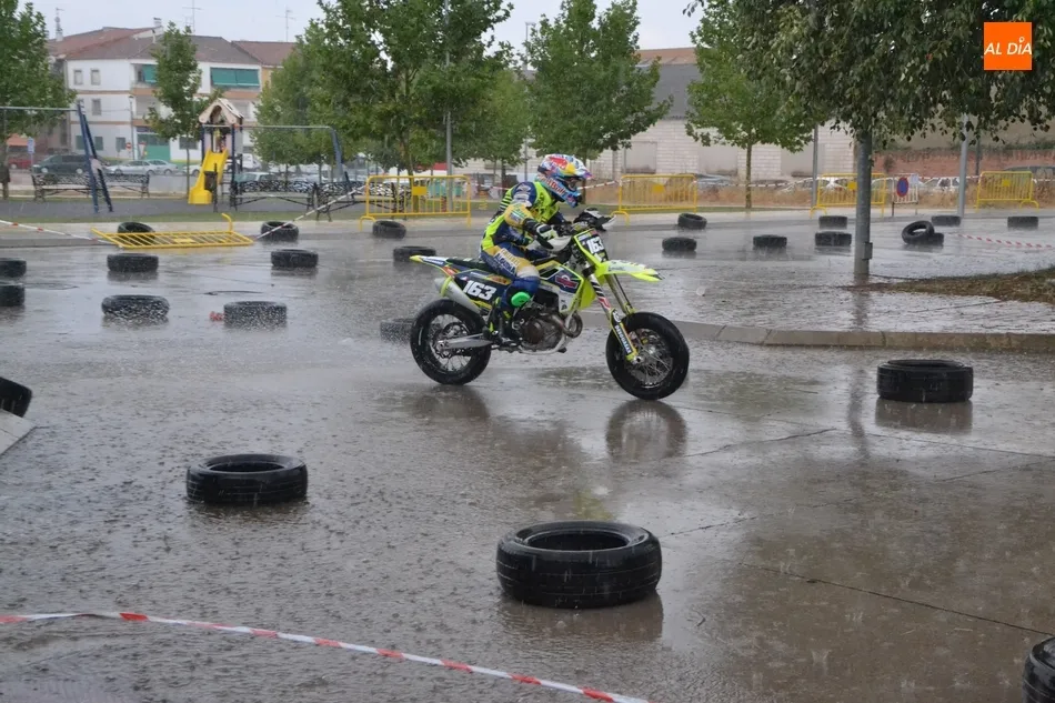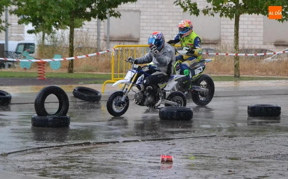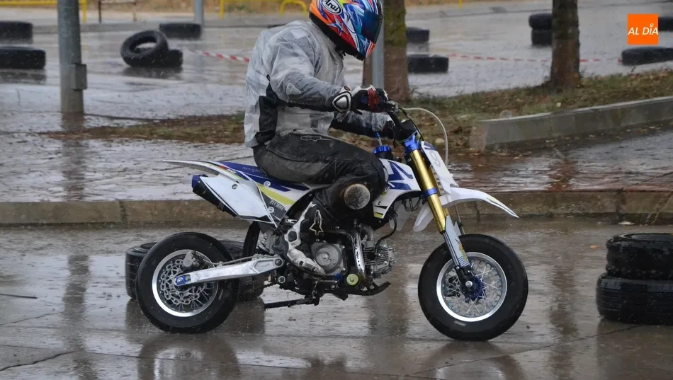 CIUDAD RODRIGO | El aguacero obligó a cancelar las carreras de pit bike, pero se acabaron disputando al secarse rápido el circuito