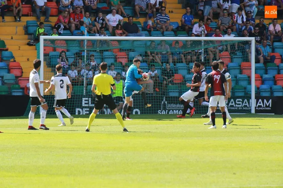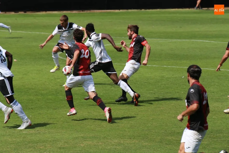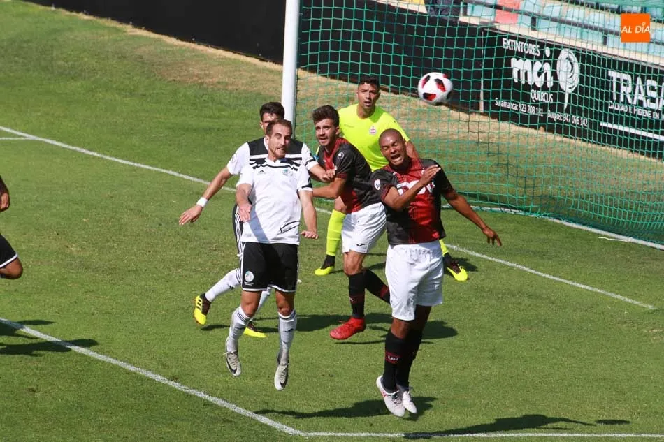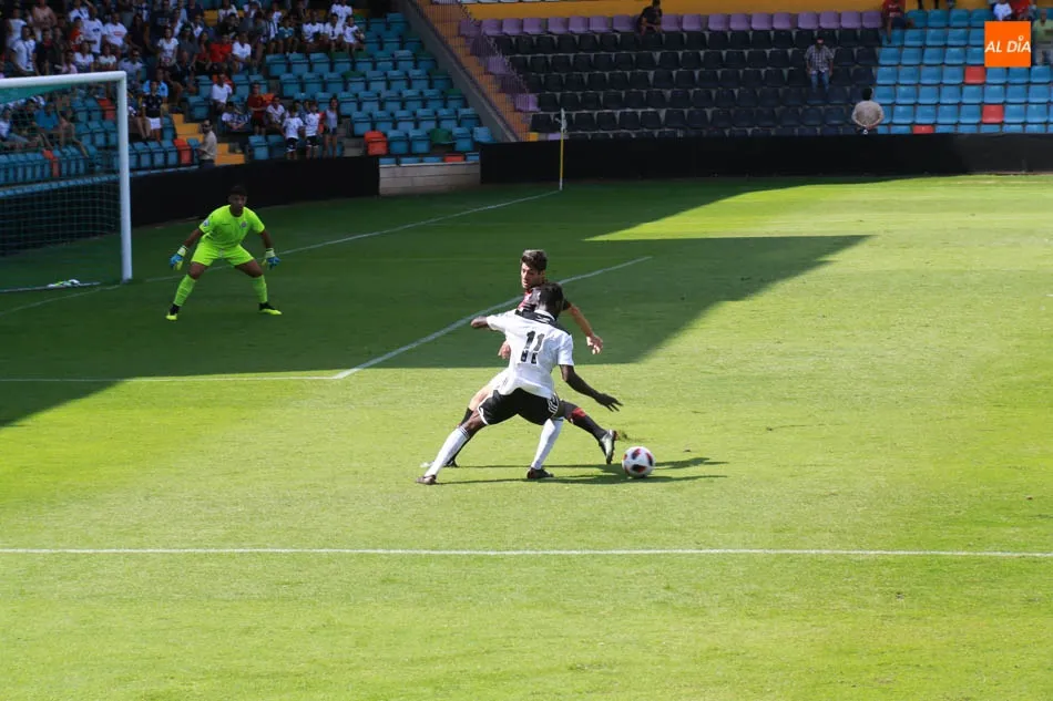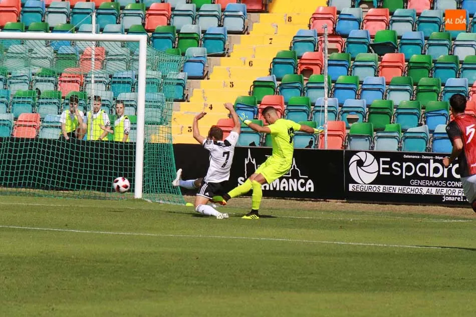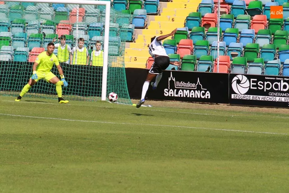 El equipo blanquinegro salió como sale siempre, a tener el balón ante los 4.000 espectadores del Helmántico. Lo cierto es que la primera ocasión caía del bando madrileño, pero Owusu abría la lata a los cinco minutos tras recibir en profundidad de Fer Ruiz. El equipo charro templaba y dominaba el balón y a los veinte minutos, Fer Ruiz aprovechaba un rechace tras una falta para poner el 2-0.