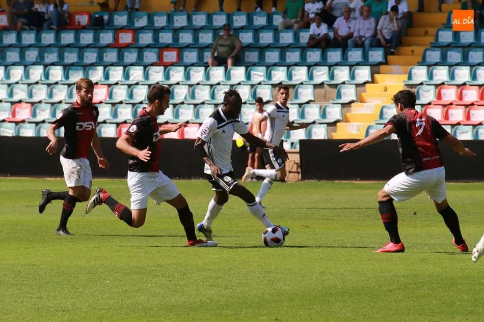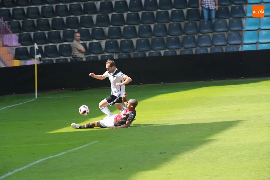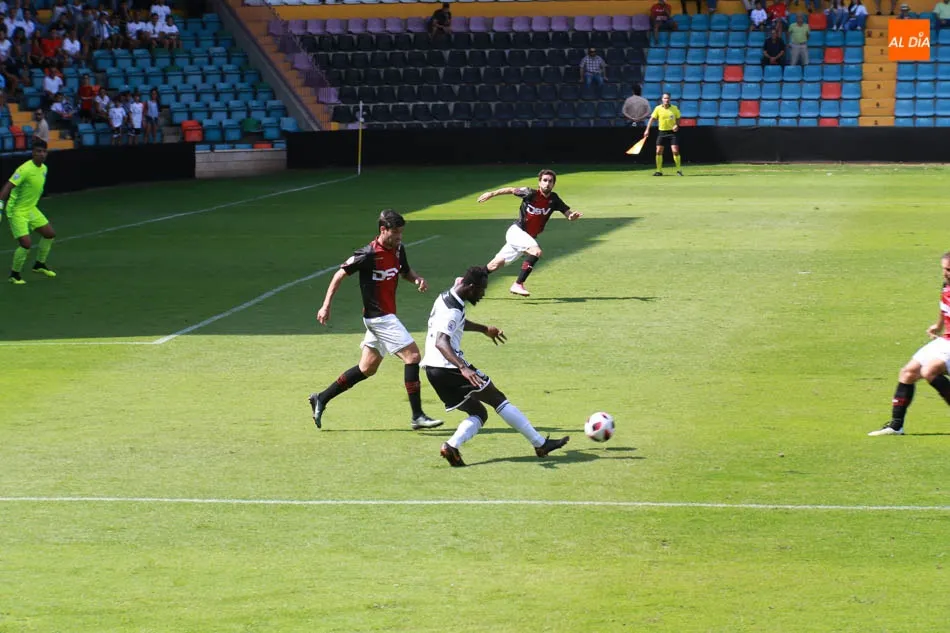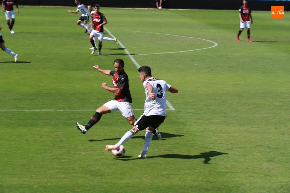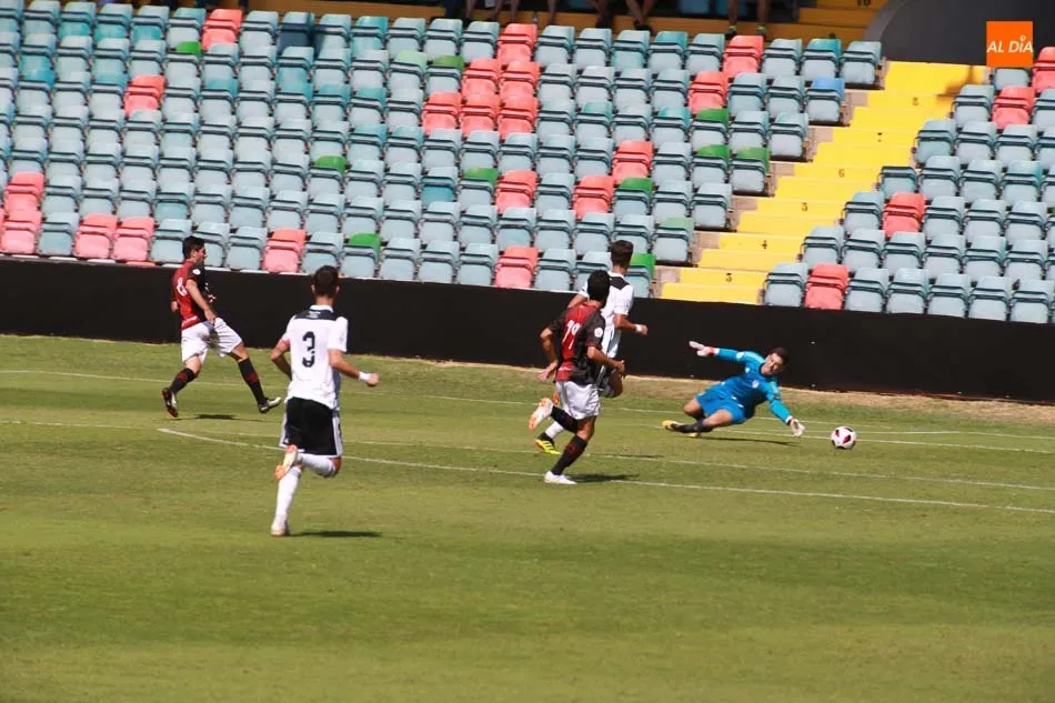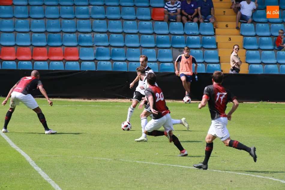 El equipo blanquinegro salió como sale siempre, a tener el balón ante los 4.000 espectadores del Helmántico. Lo cierto es que la primera ocasión caía del bando madrileño, pero Owusu abría la lata a los cinco minutos tras recibir en profundidad de Fer Ruiz. El equipo charro templaba y dominaba el balón y a los veinte minutos, Fer Ruiz aprovechaba un rechace tras una falta para poner el 2-0.