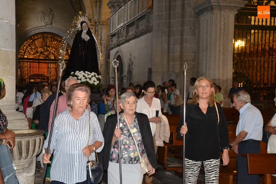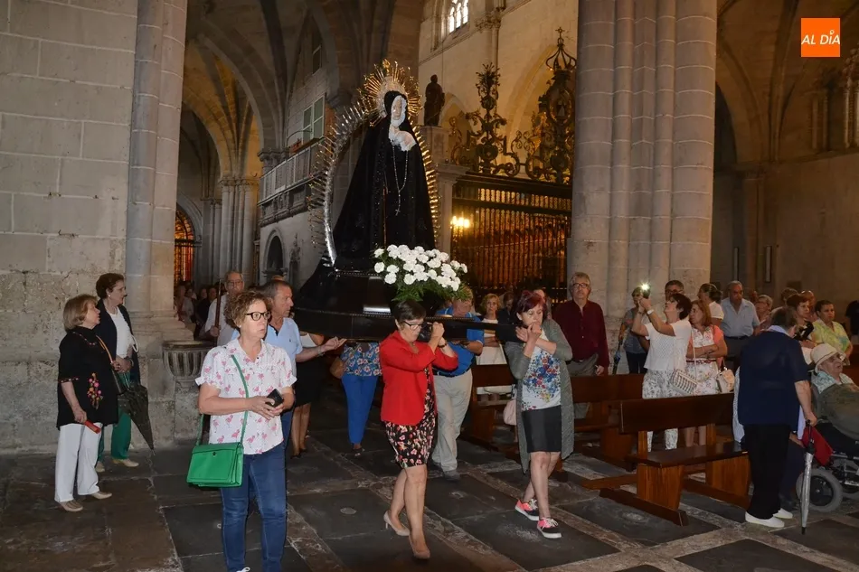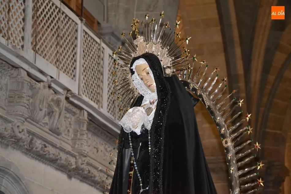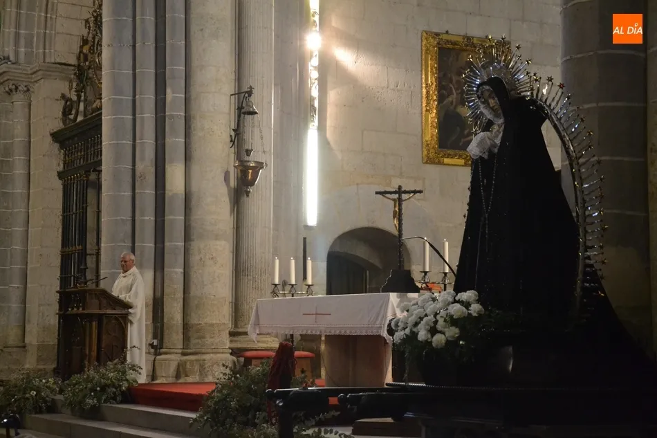 La Catedral de Santa María de Ciudad Rodrigo acogió en la tarde del domingo la tradicional conmemoración por parte de la Cofradía de Nuestra Señora de La Soledad de los Dolores de la Virgen, que aparecieron en el calendario litúrgico en la jornada del sábado.